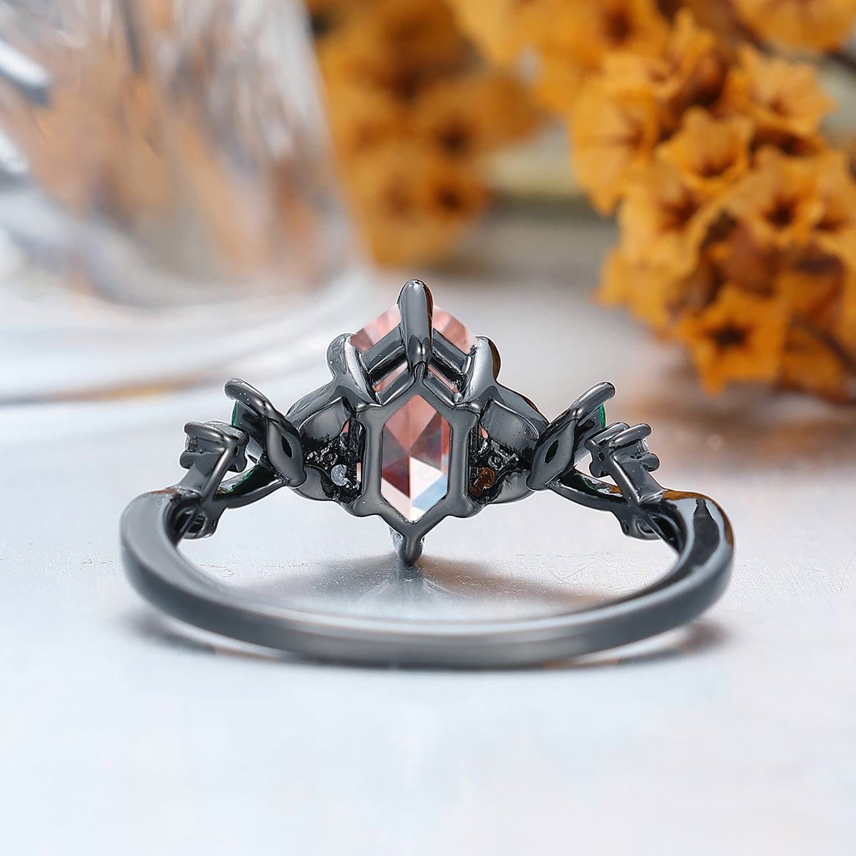 1.1CT Long Hexagon Pink Morganite Engagement Ring Nature Inspired Gold & 925 Sliver Women Ring
