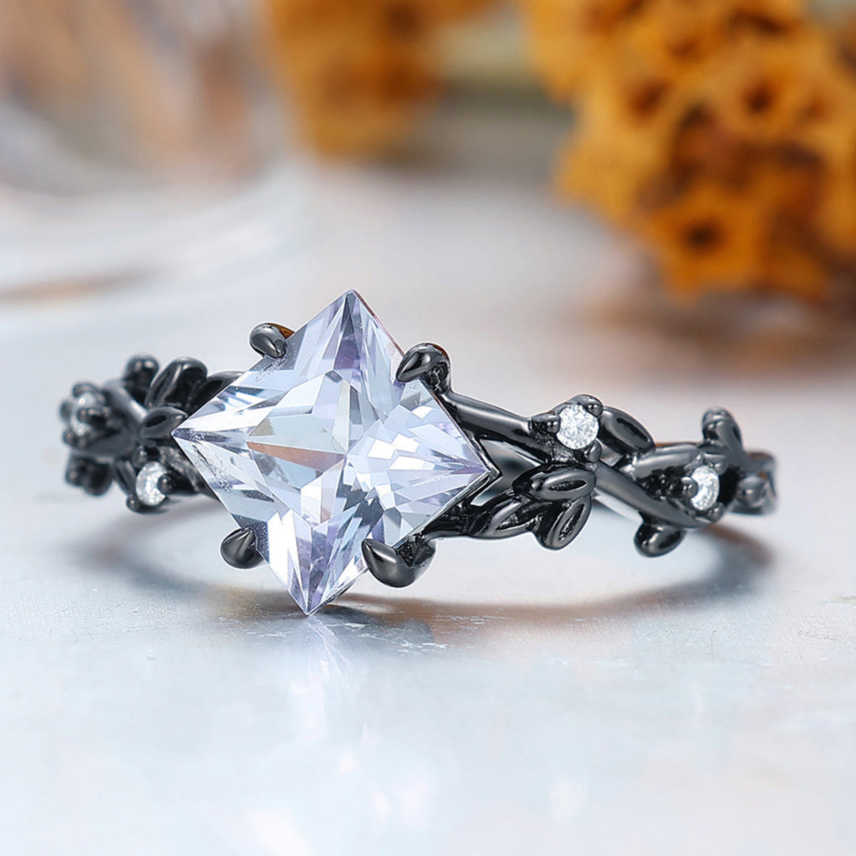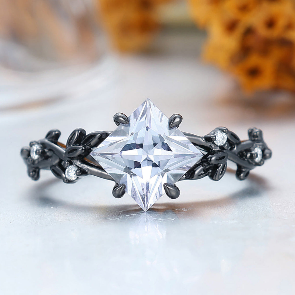 2CT Princess Cut Moissanite Engagement Leaf Ring Anniversary Bridal Ring Gift