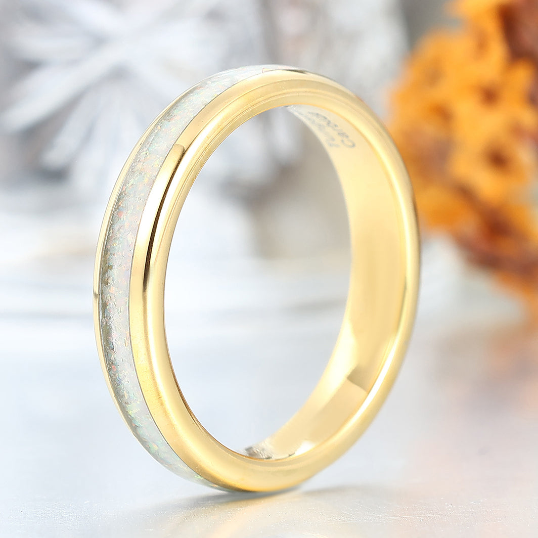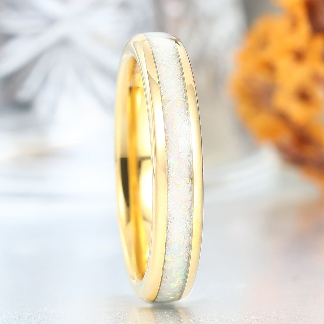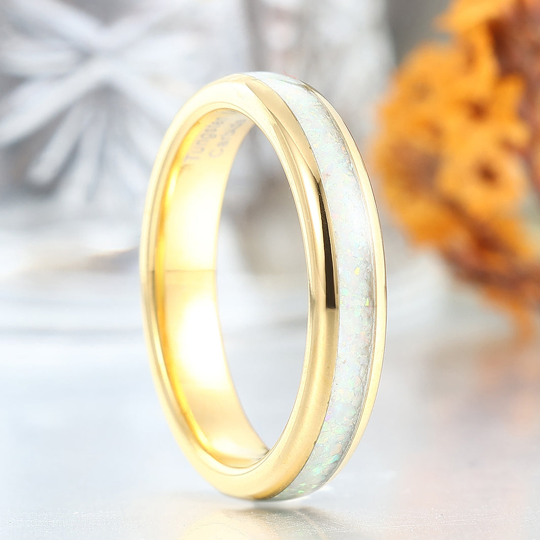 4mm Thin Band Pink White Opal Tungsten Wedding Ring Unisex Birthday Band