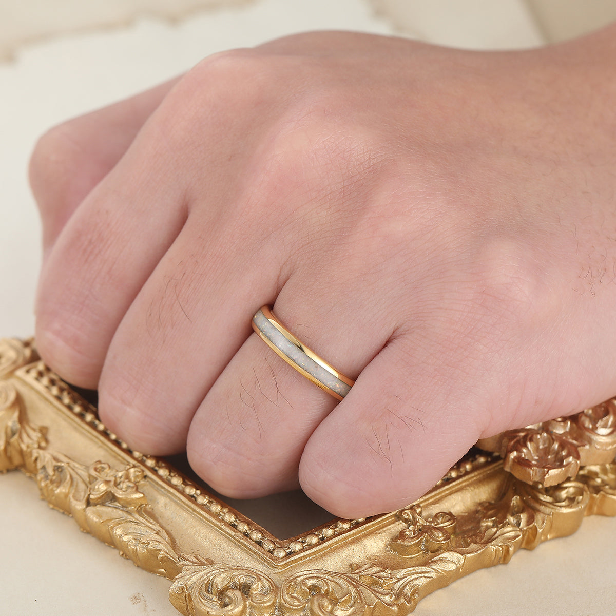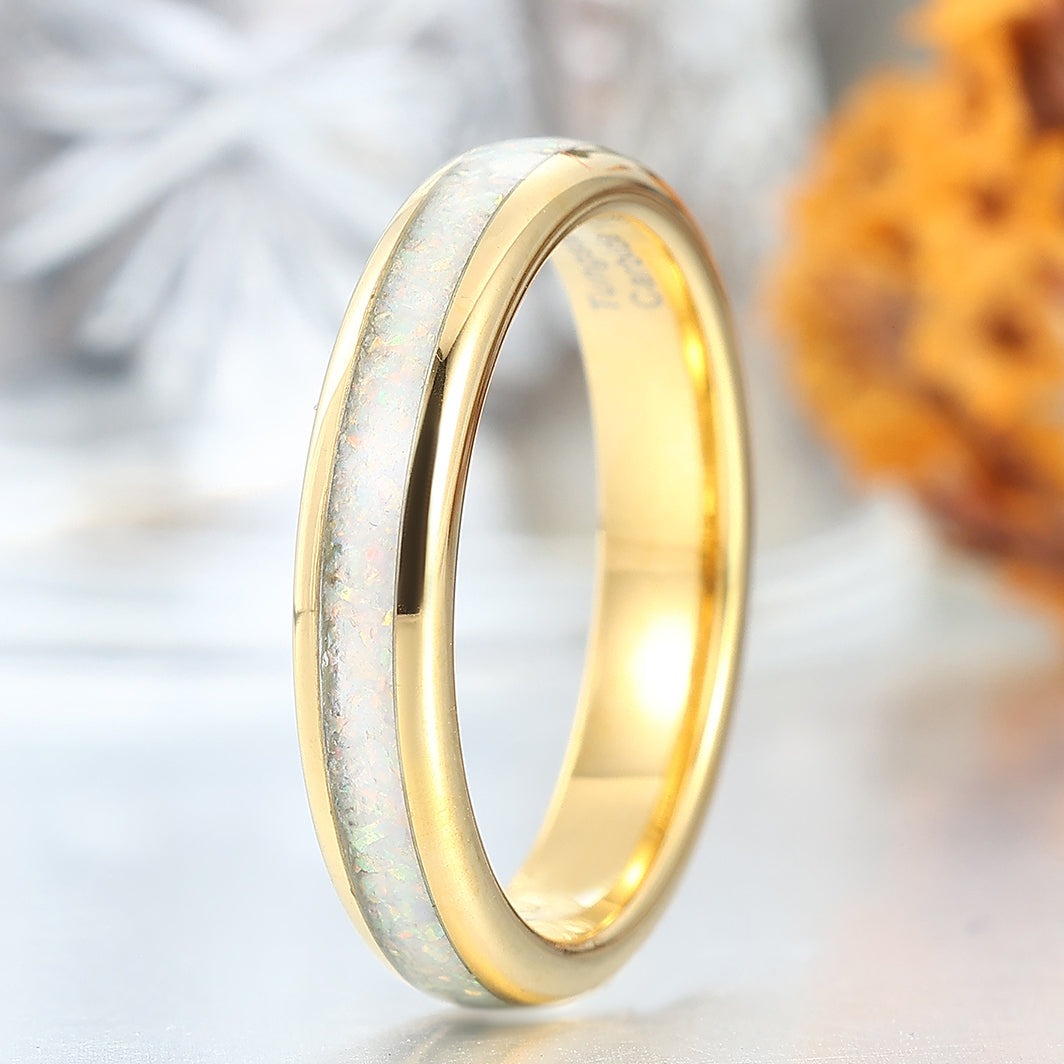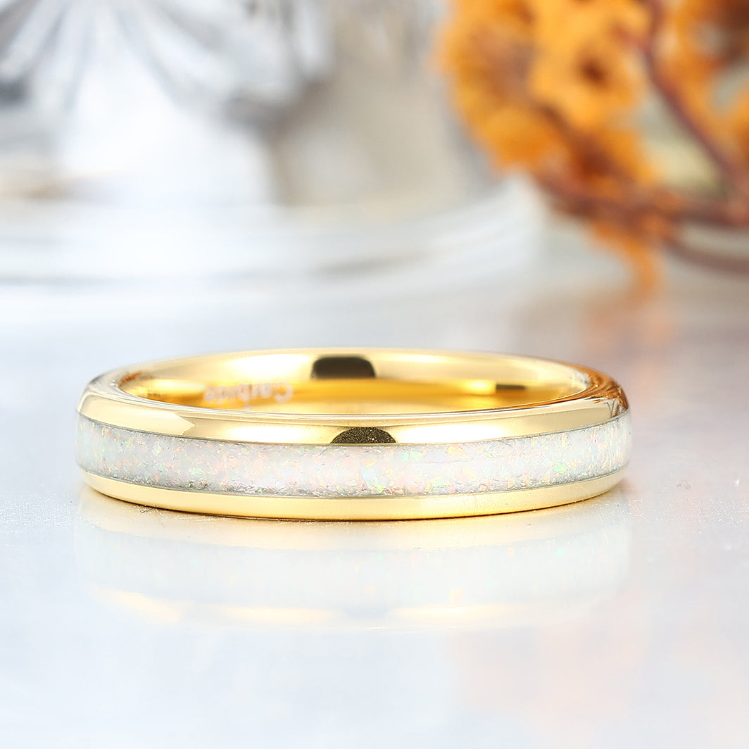 4mm Thin Band Pink White Opal Tungsten Wedding Ring Unisex Birthday Band