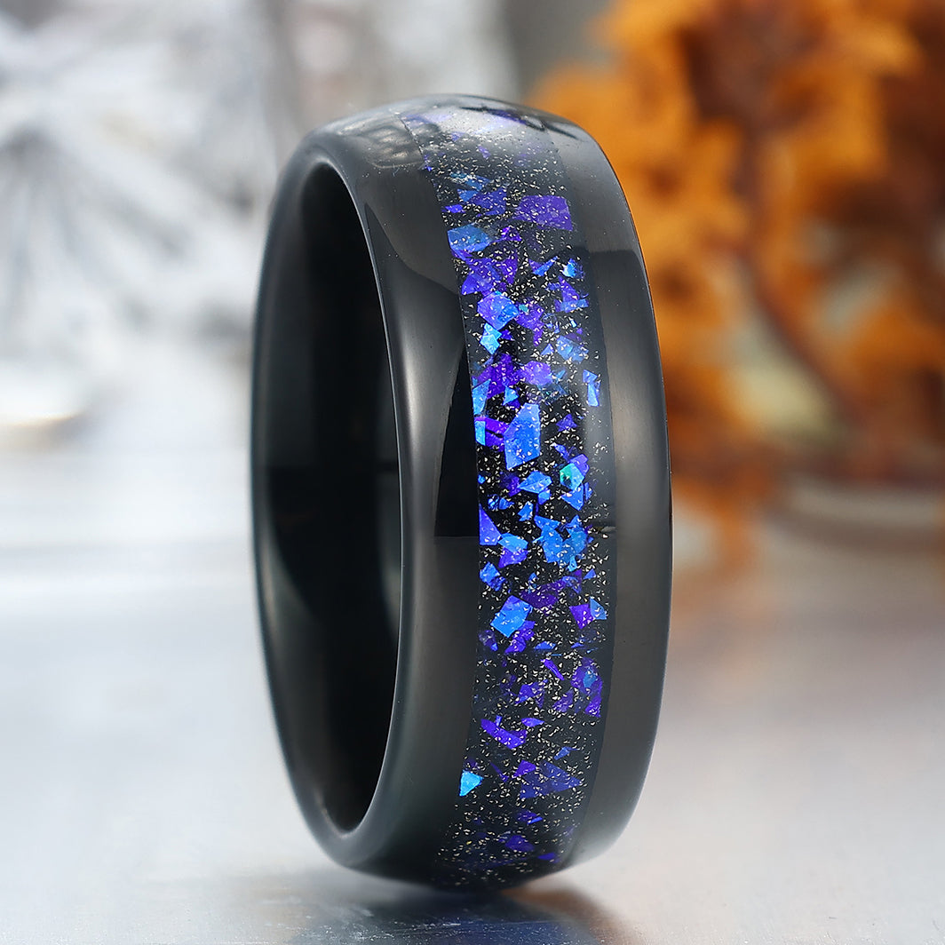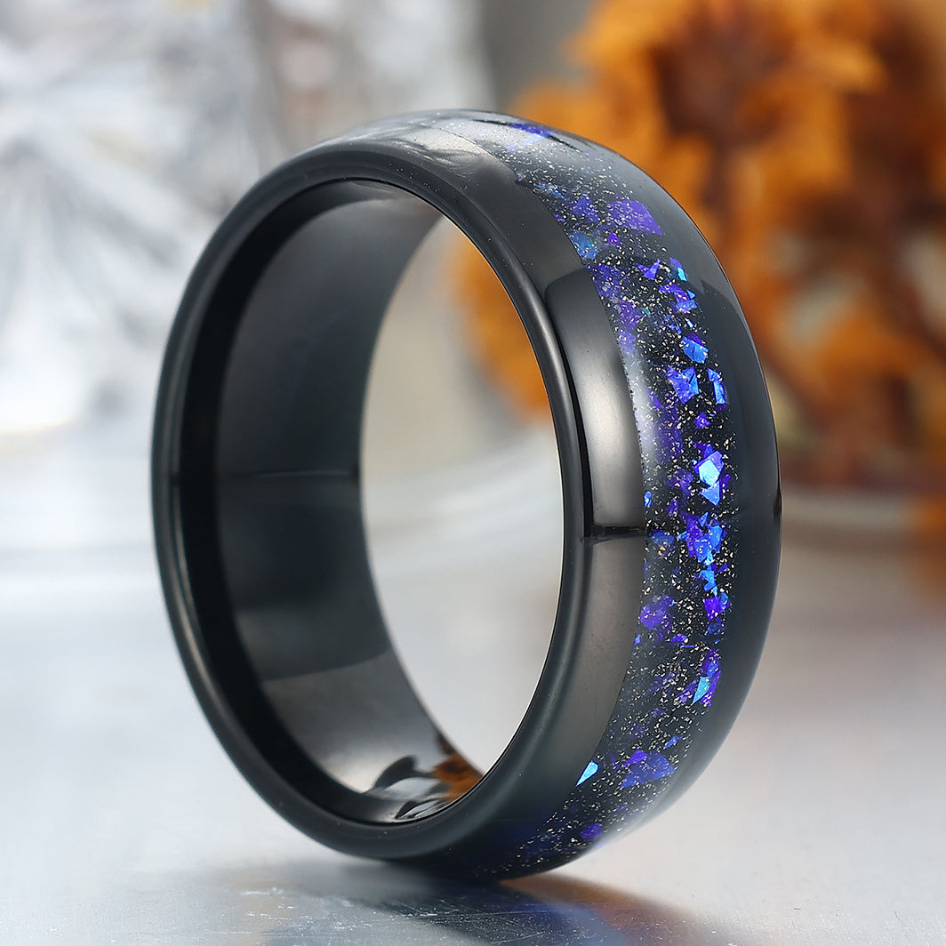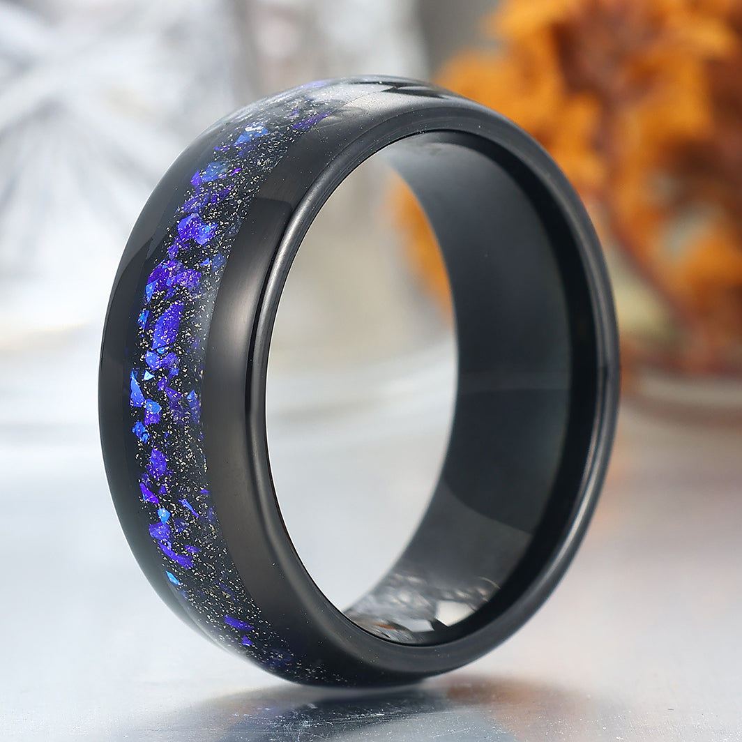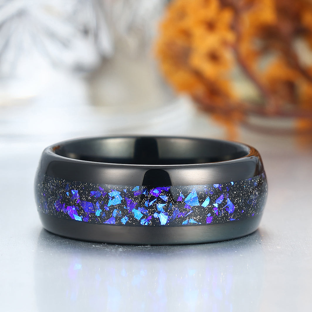 8mm Wide Orion Nebula Tungsten Ring Black Plated Birthday Ring For Men and Women