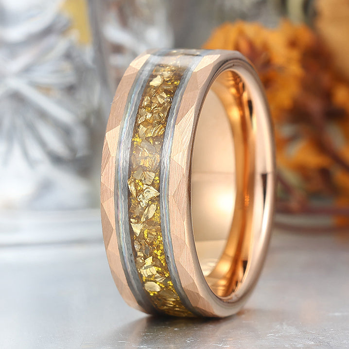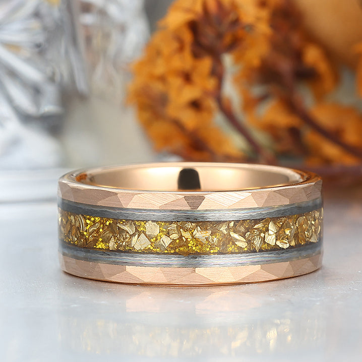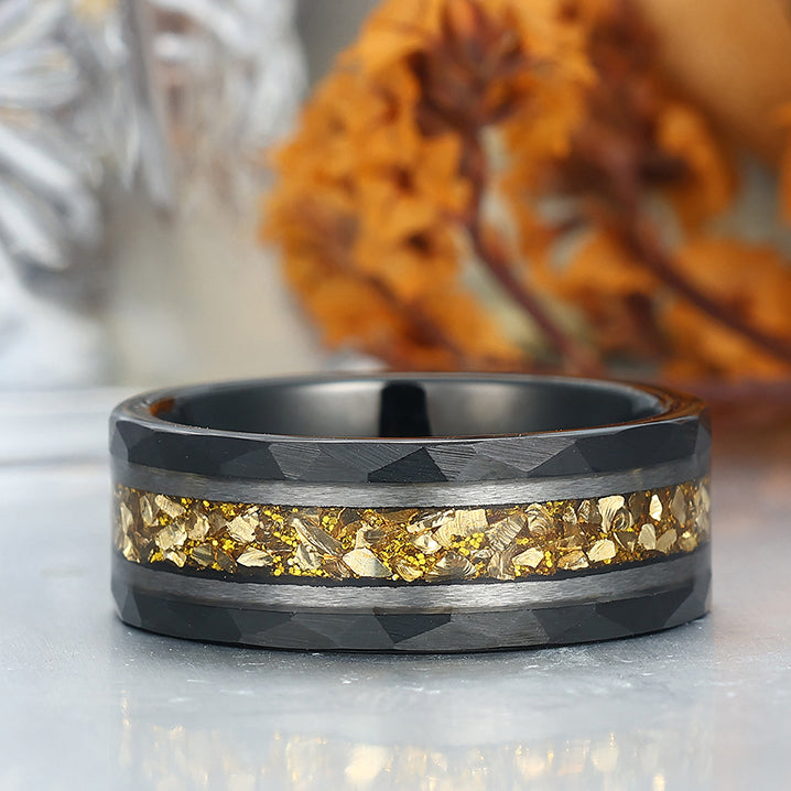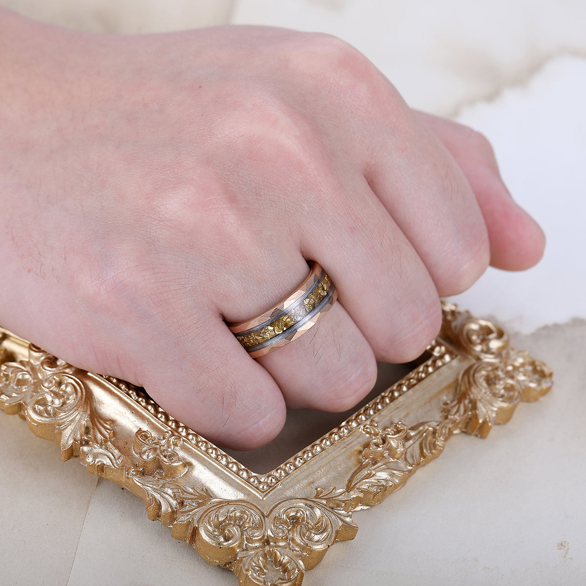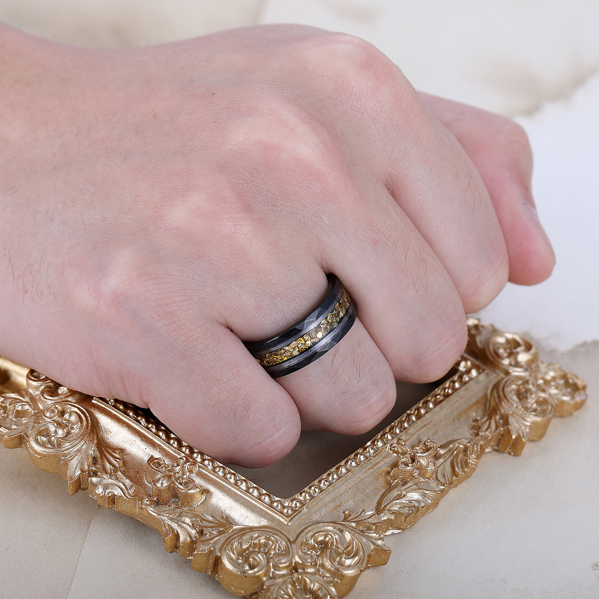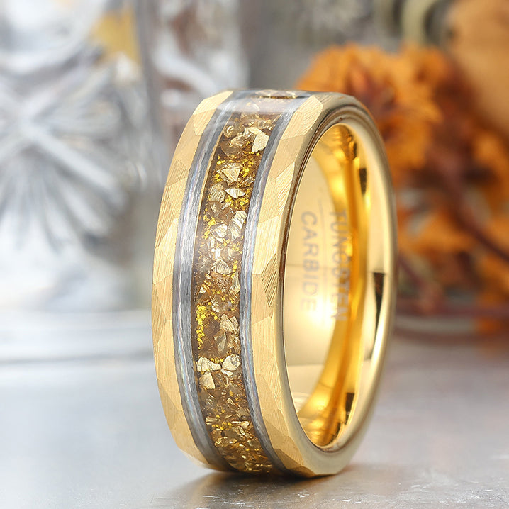 Metal Type: Tungsten Carbide - Crushed Citrine and Two Silver Lines Inlay - Hypoallergenic