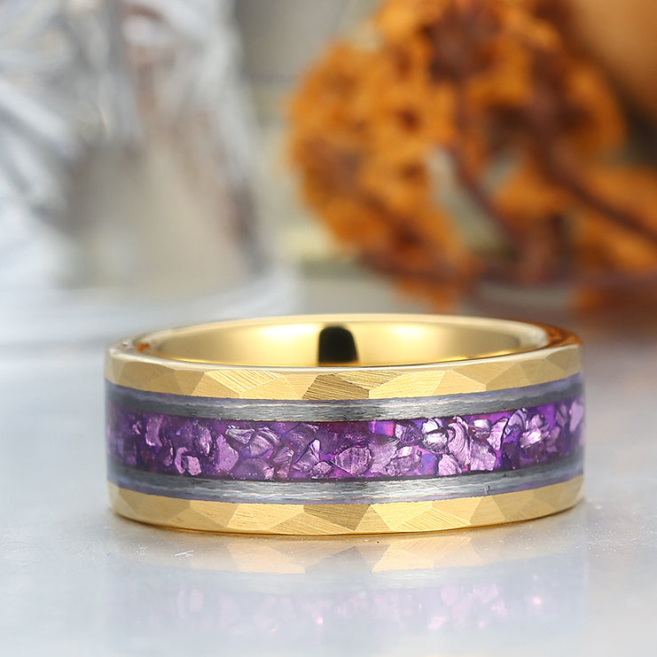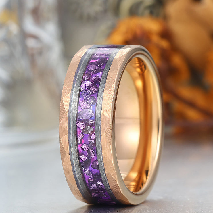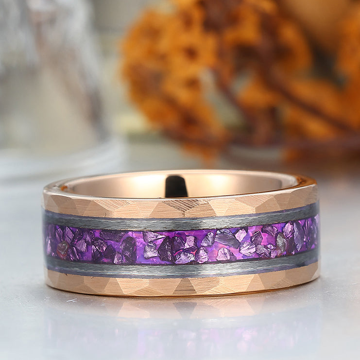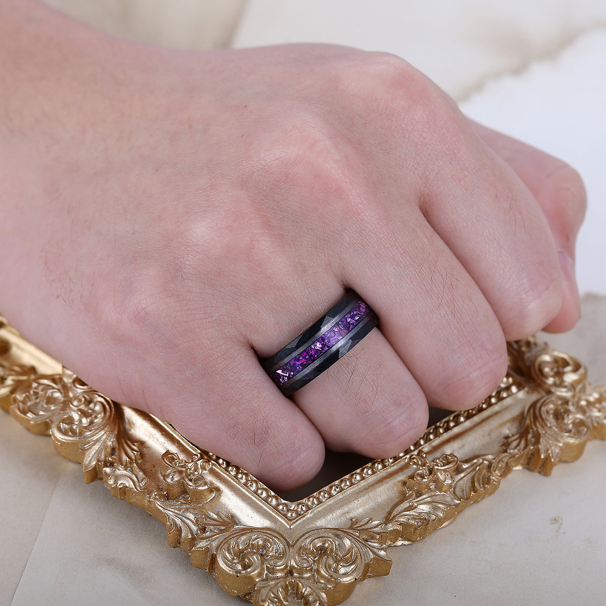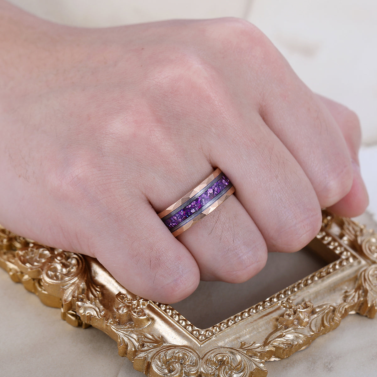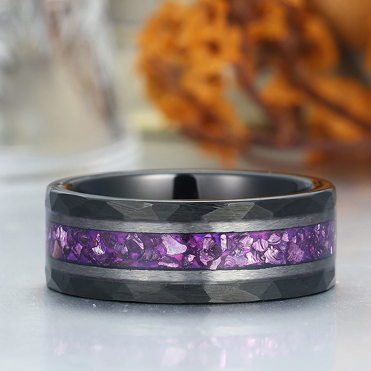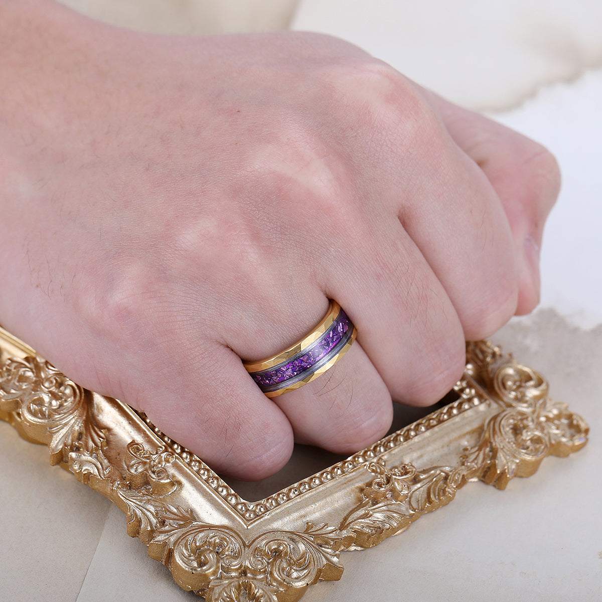 Metal Type: Tungsten Carbide - Crushed Natural Amethyst Inlay - Hypoallergenic - Comfort Fit