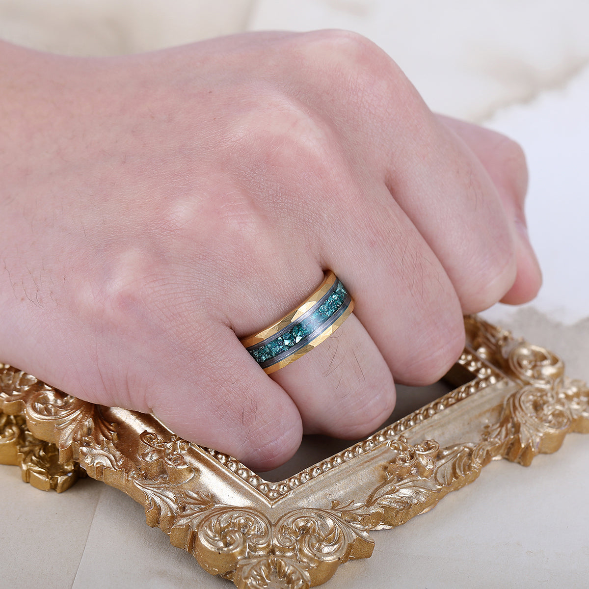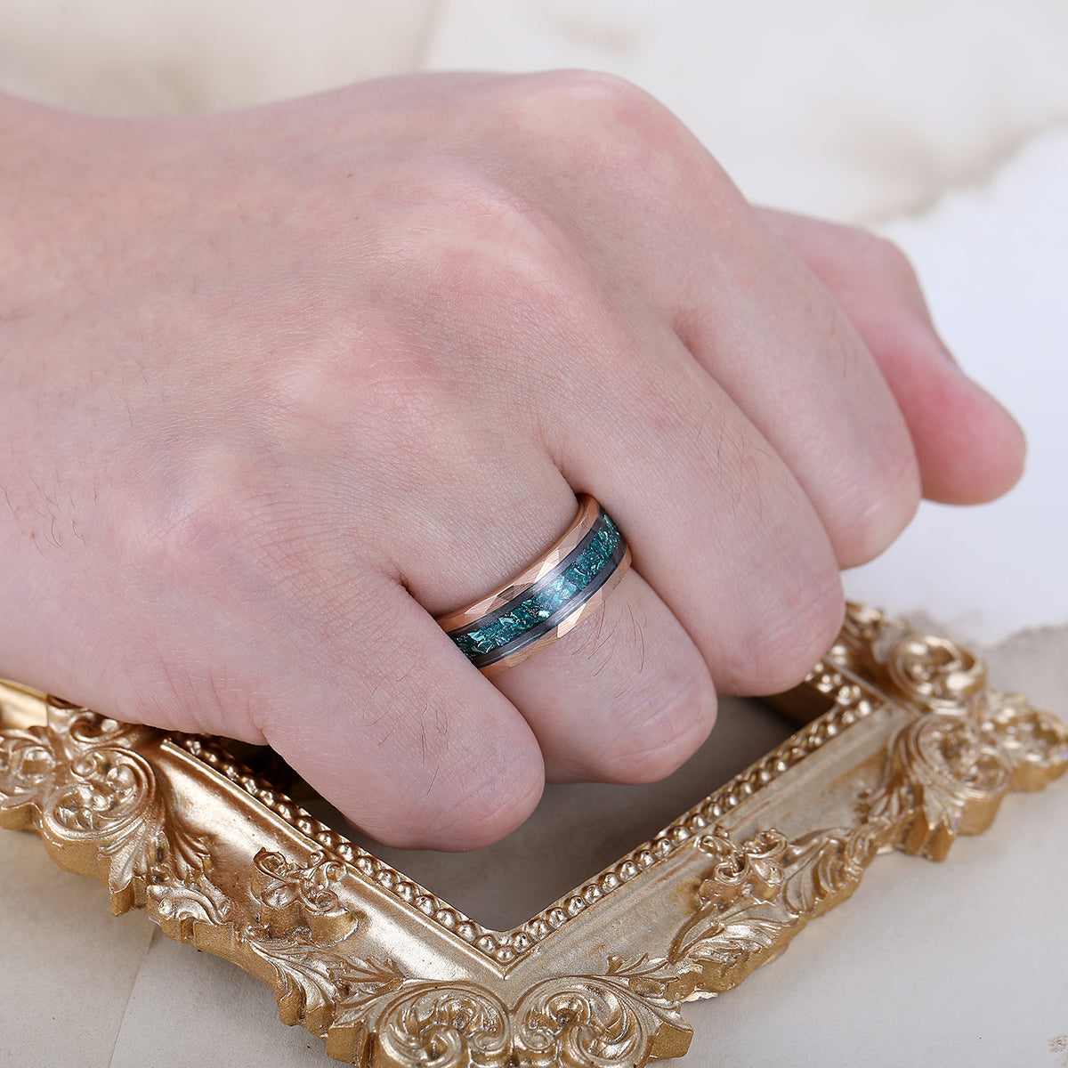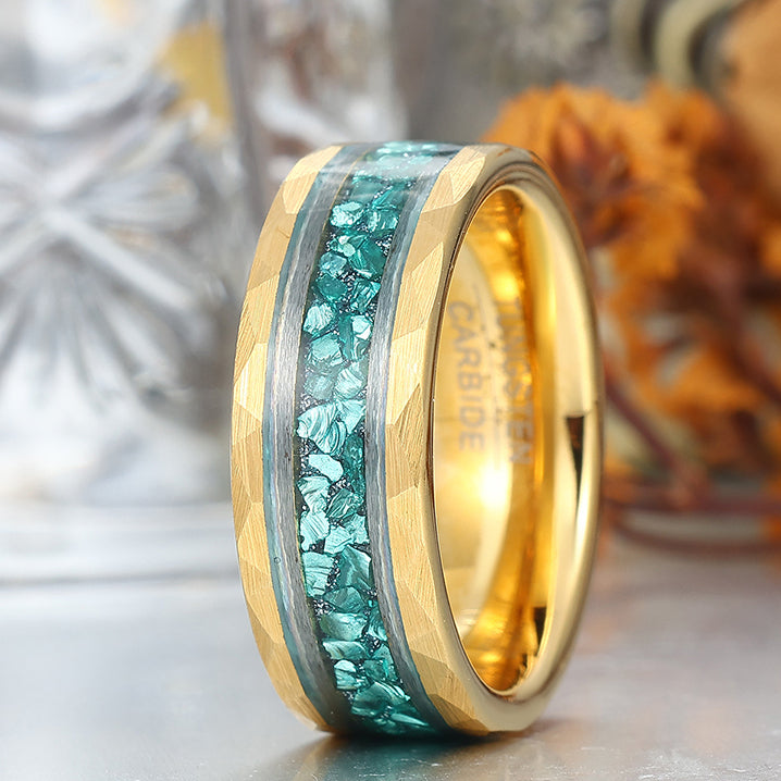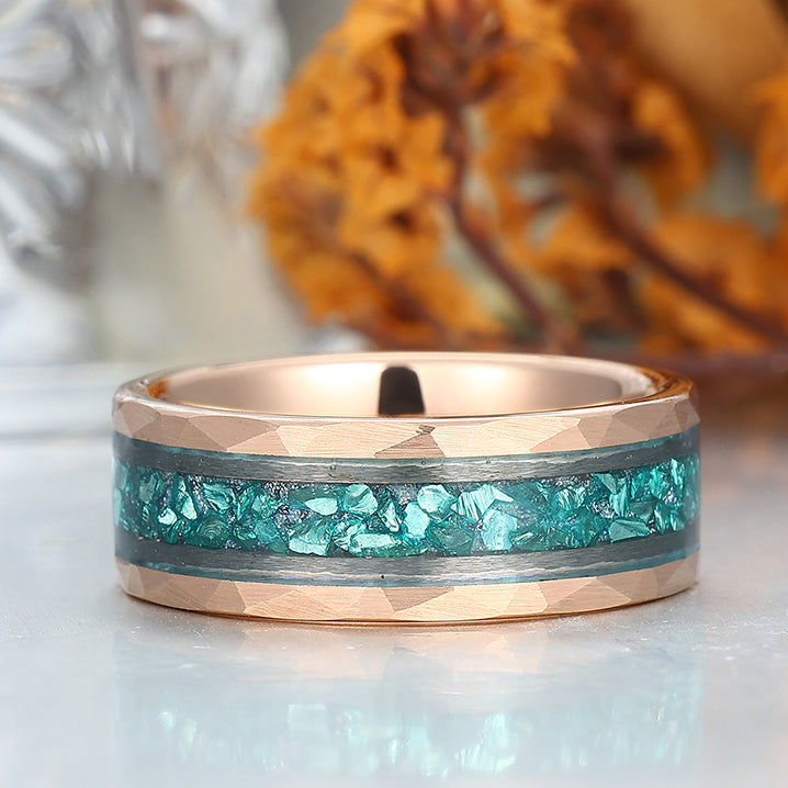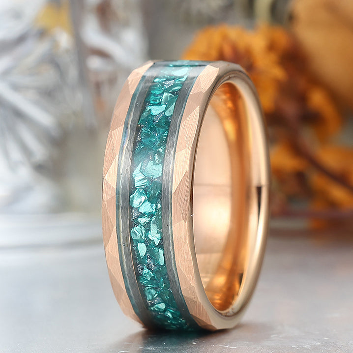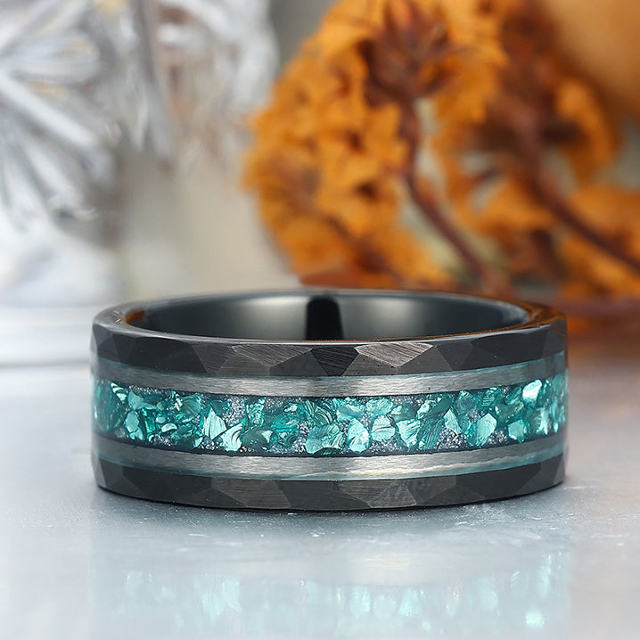 Aquamarine Hammered Hammered Tungsten Wedding Band For Men And Women 8mm Engraving Ring