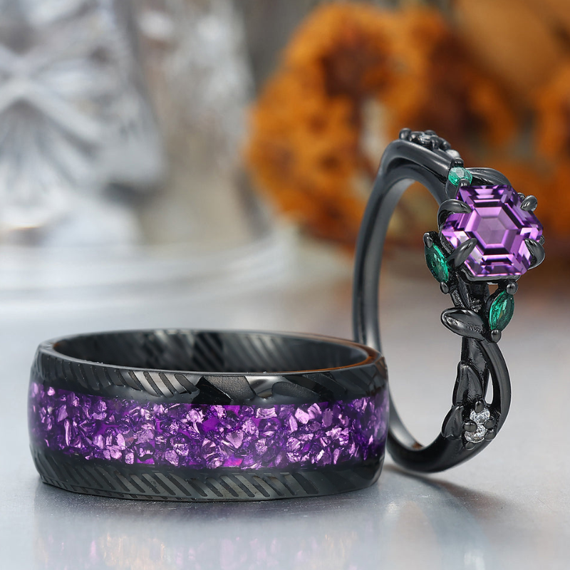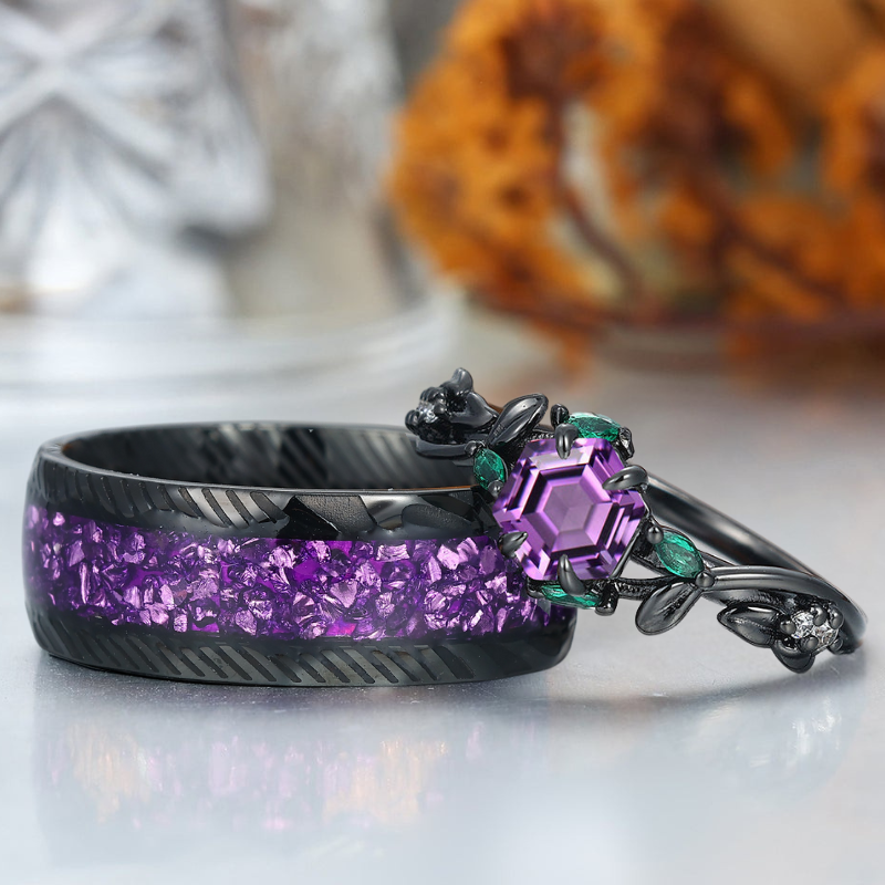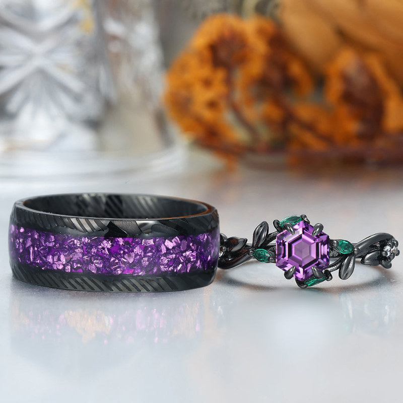 Art Deco Natural Amethyst Promise Rings For Couples Anniversary Marriage Ring