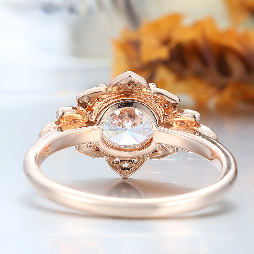 Artsy Cluster Round Moissanite Engagement Ring Unique Promise Anniversary Bridal Ring