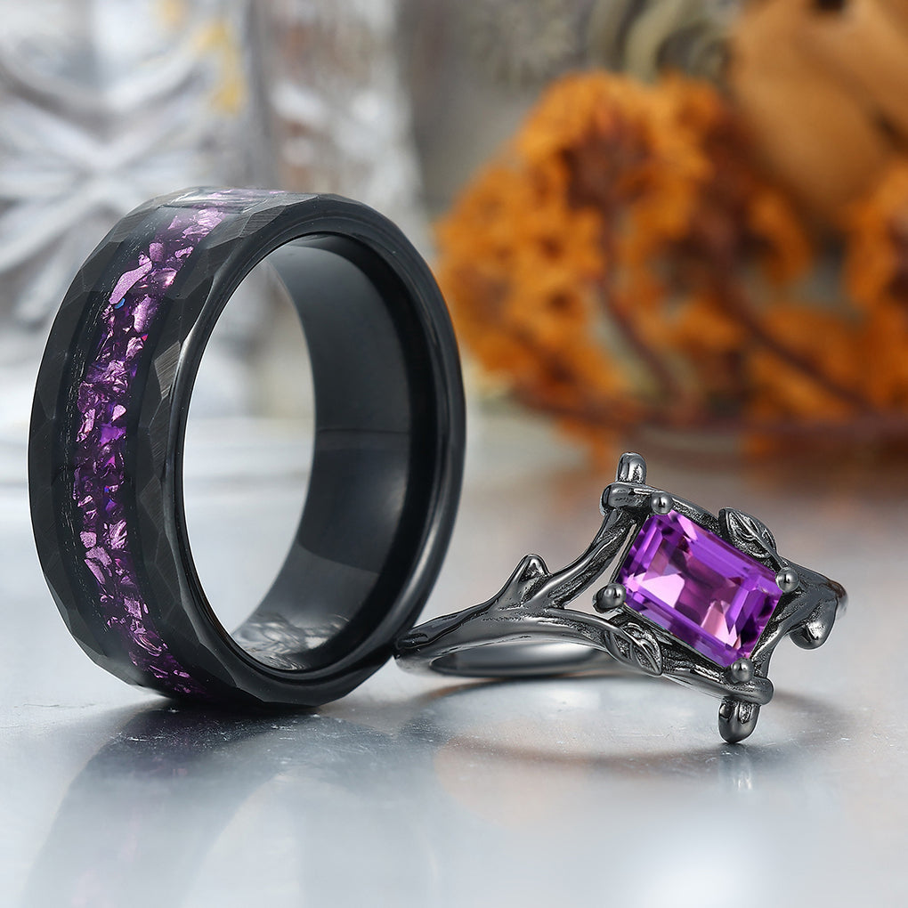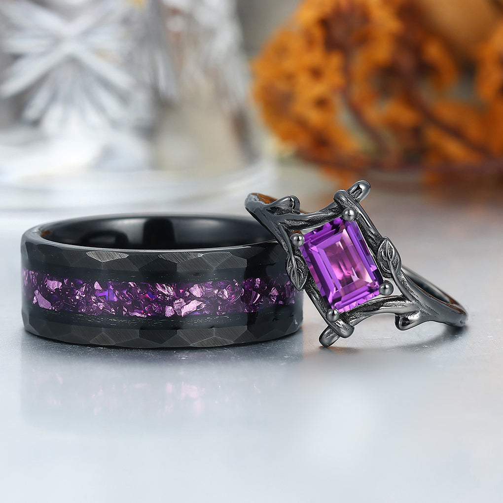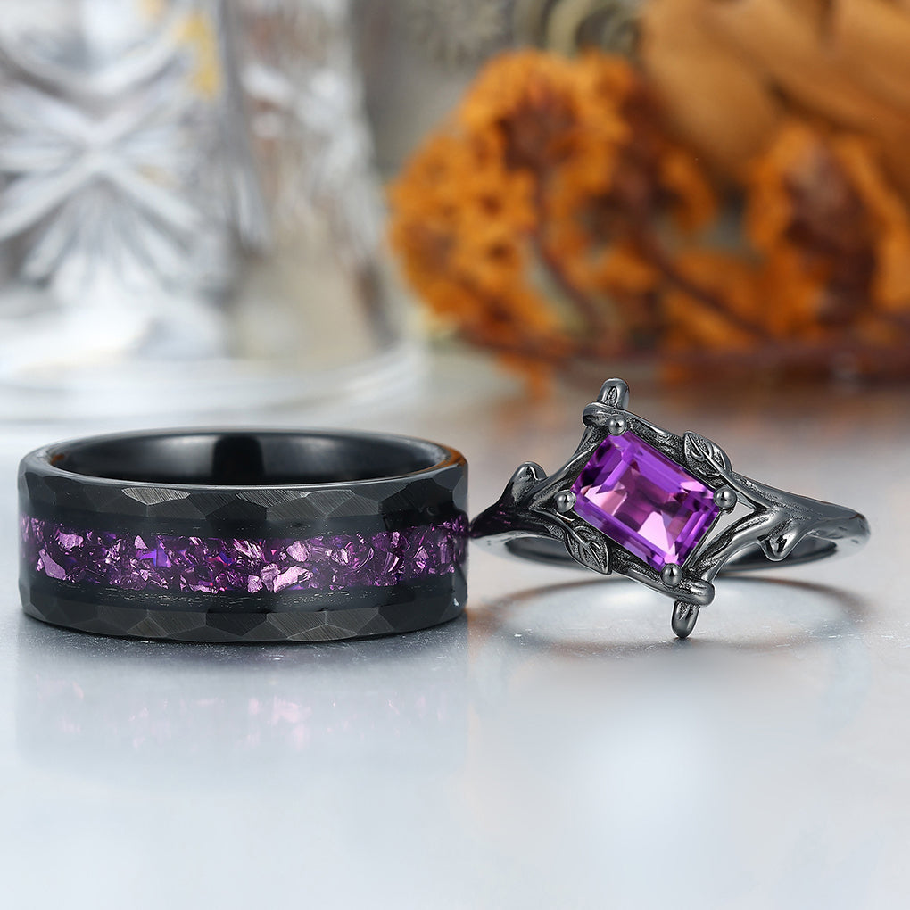 Branch Inspired Amethyst Embracing Couple Rings Purple His and Hers Ring Set