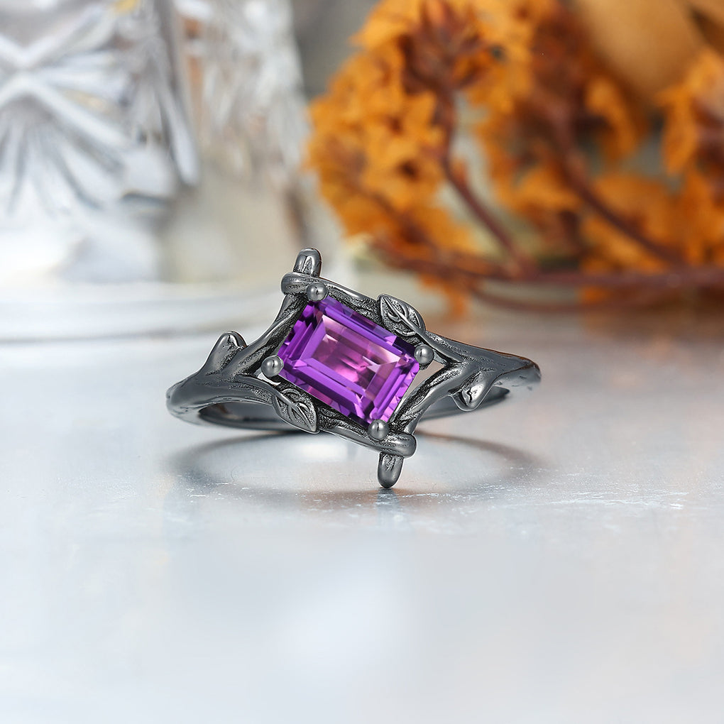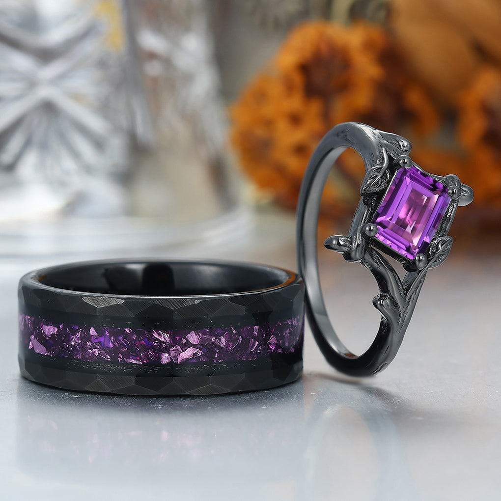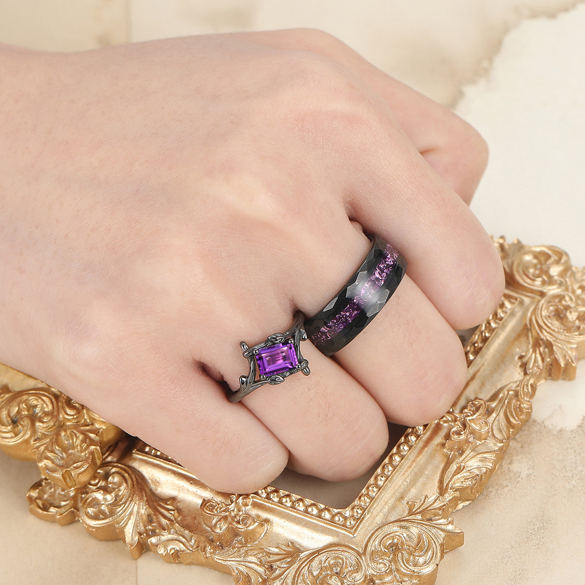 Branch Inspired Amethyst Embracing Couple Rings Purple His and Hers Ring Set