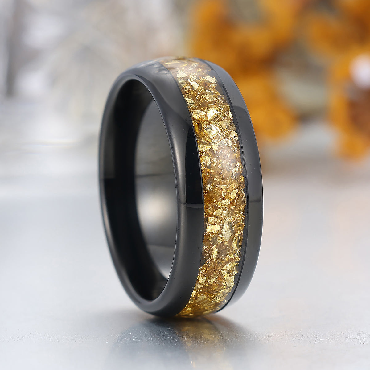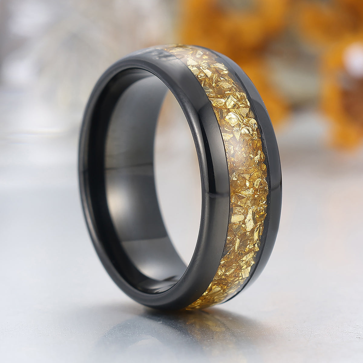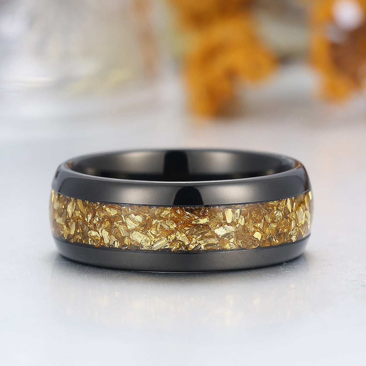 Metal Type: Tungsten Carbide - Crushed Citrine Inlay - Hypoallergenic