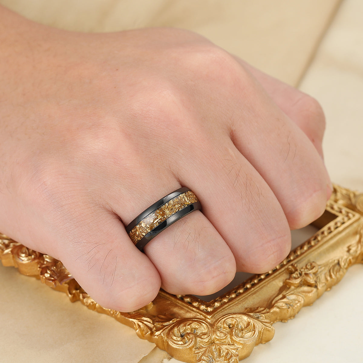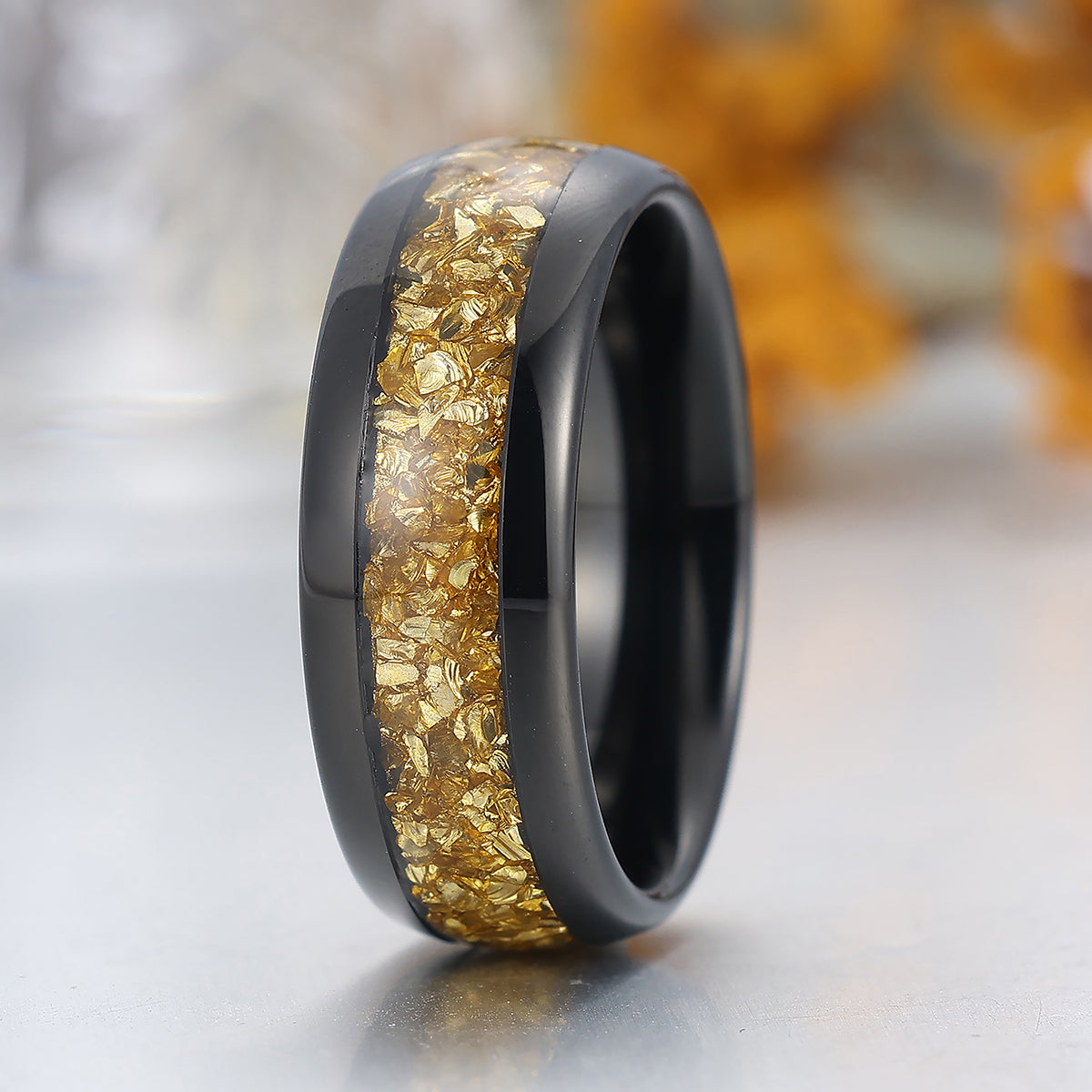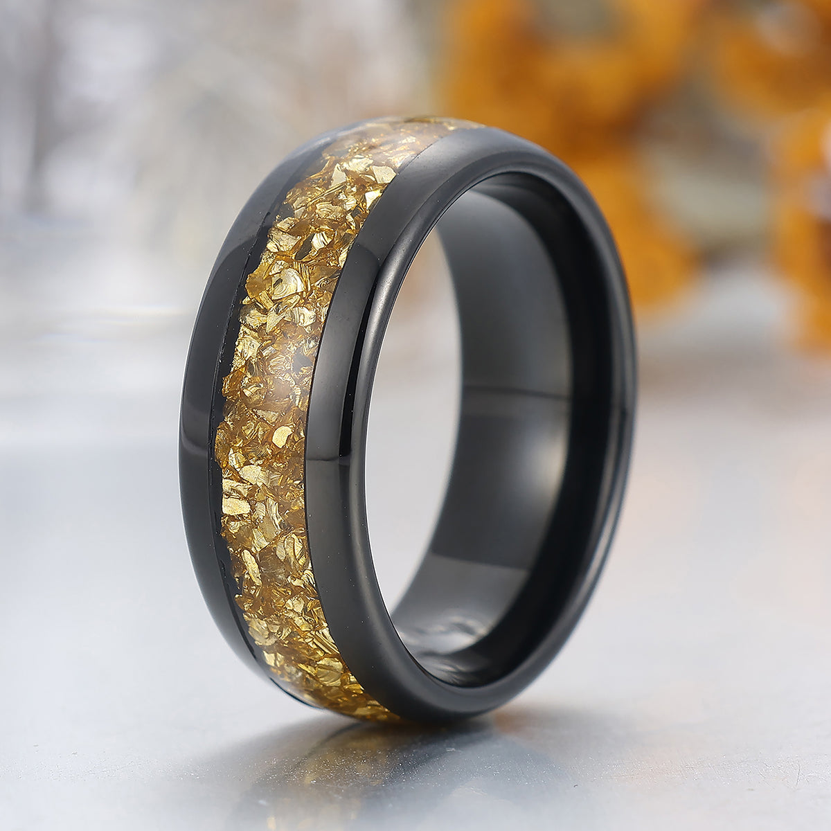 Metal Type: Tungsten Carbide - Crushed Citrine Inlay - Hypoallergenic