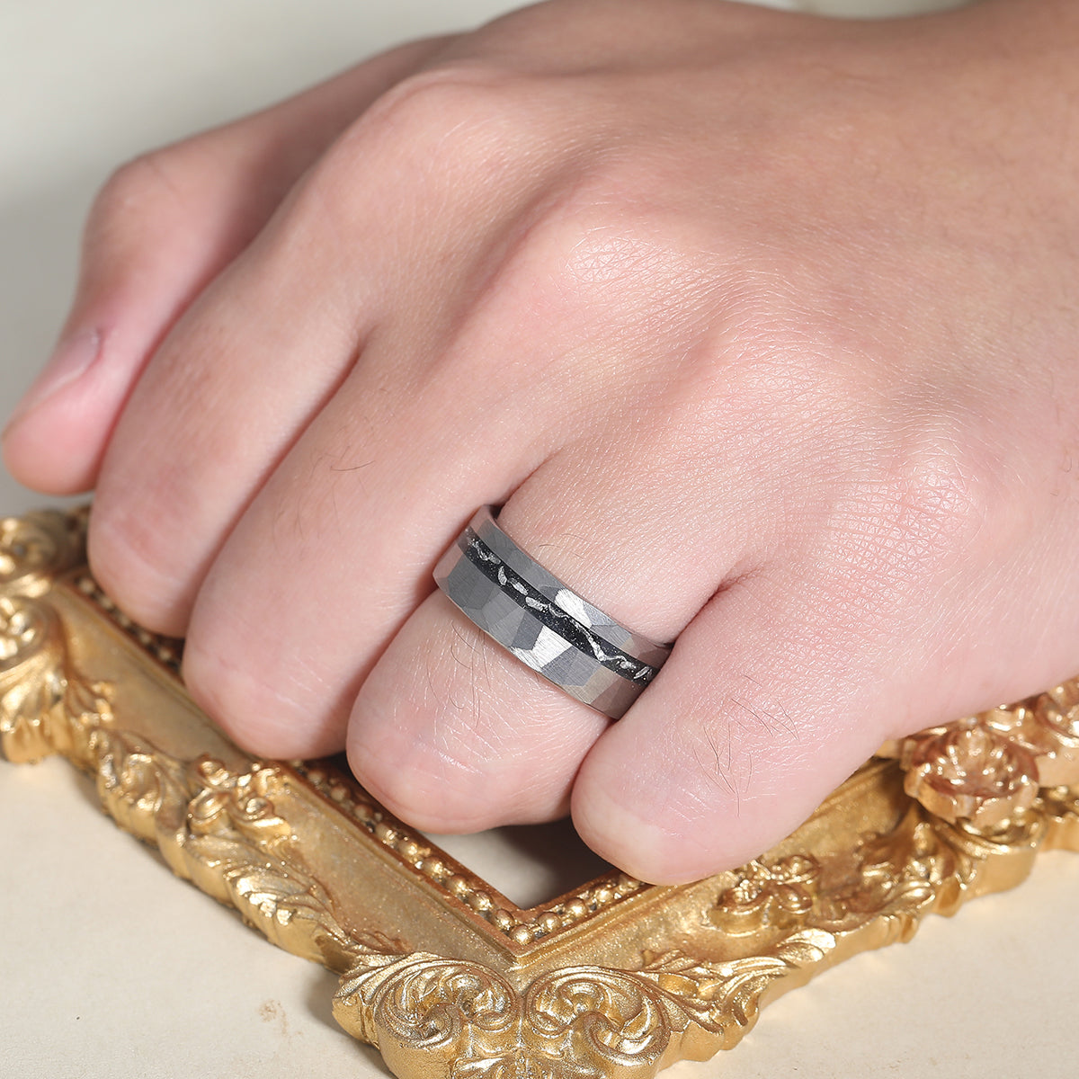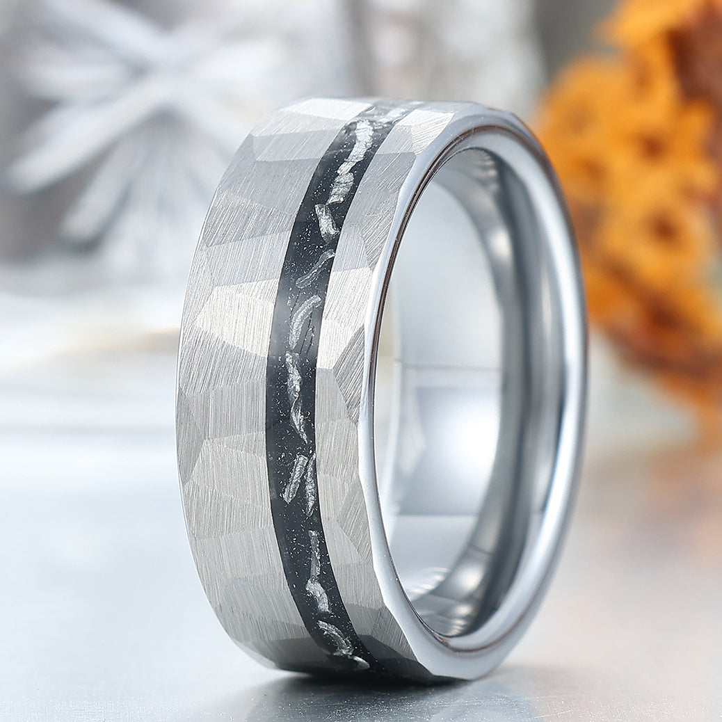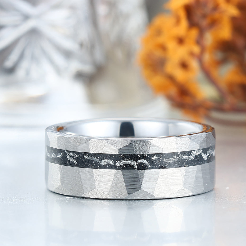 Metal Type: Tungsten Carbide - Crushed Meteorite Inlay - Hypoallergenic