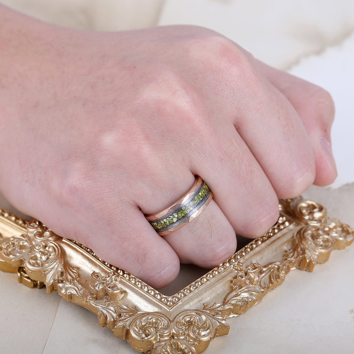Metal Type: Tungsten Carbide - Crushed Peridot and Two Silver Lines Inlay - Hypoallergenic