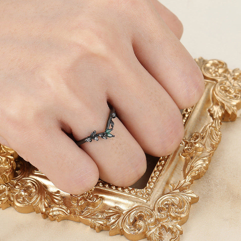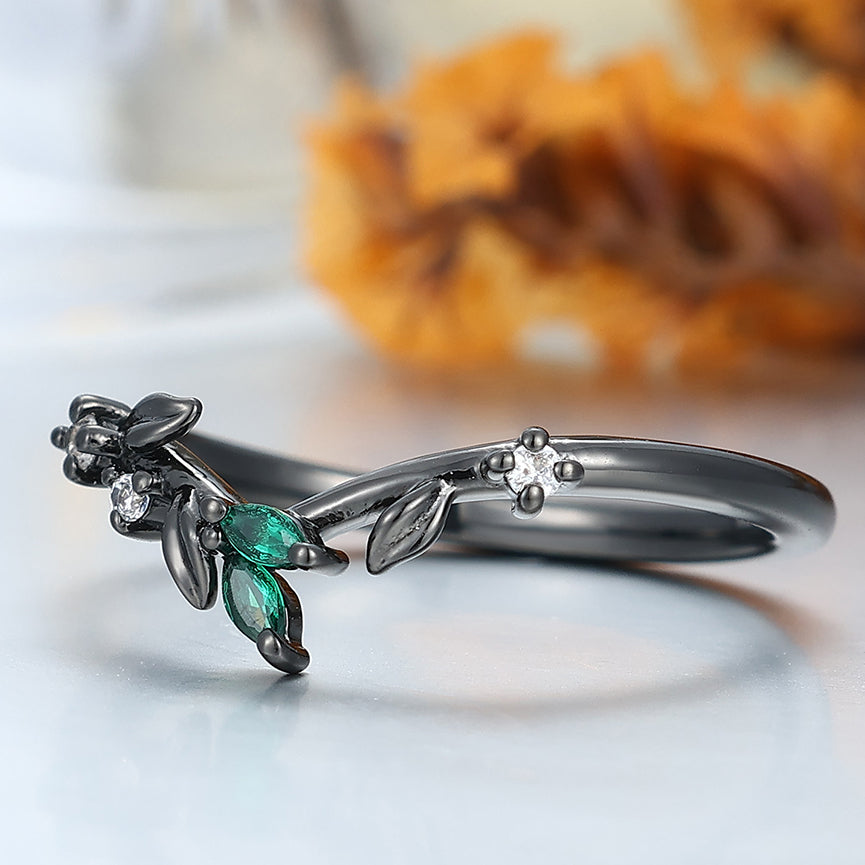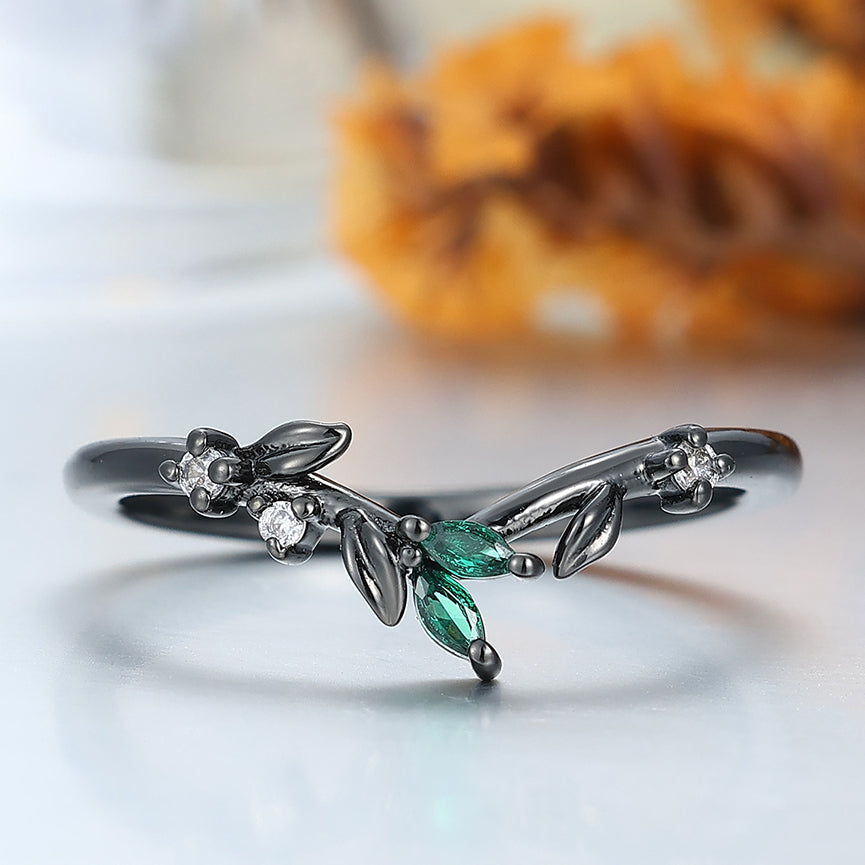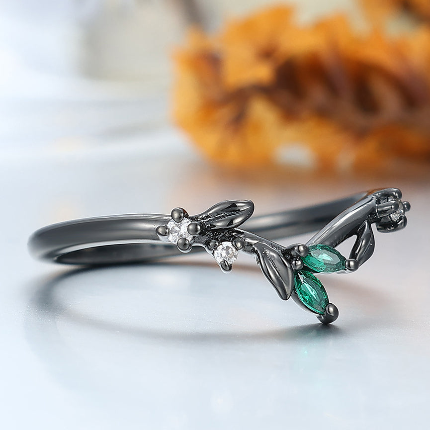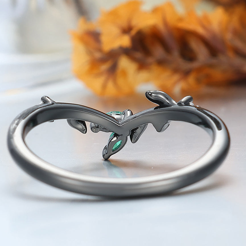 Curved Sprig Moissanite And Emerald Women Wedding Band Anniversary Bridal Band