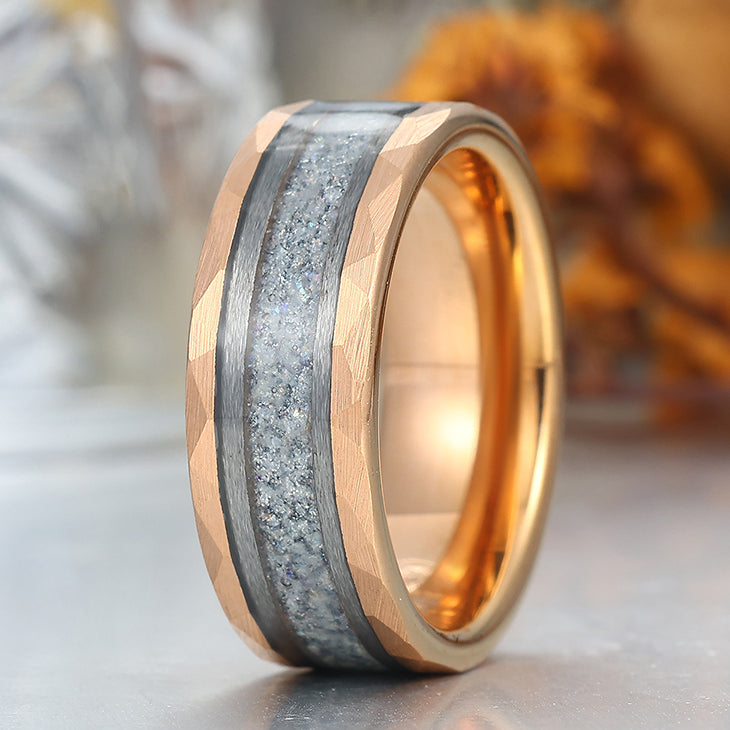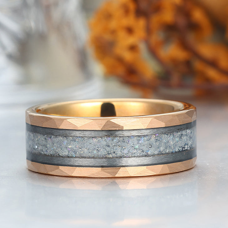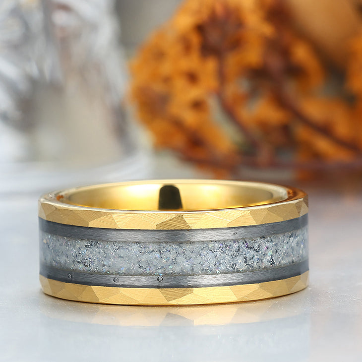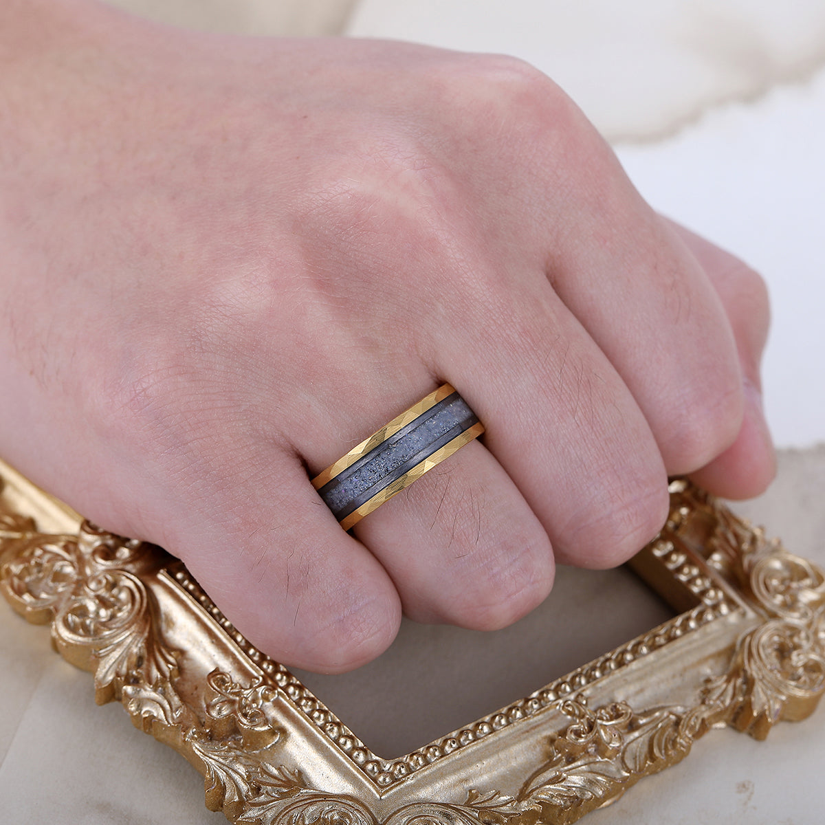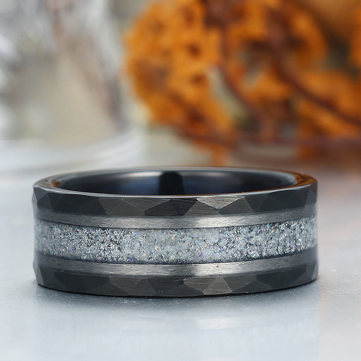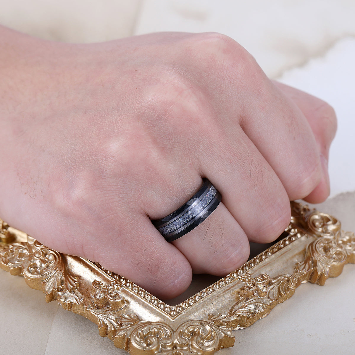 Metal Type: Tungsten Carbide - Crushed Labradorite Moonstone Inlay - Hypoallergenic - Comfort Fit