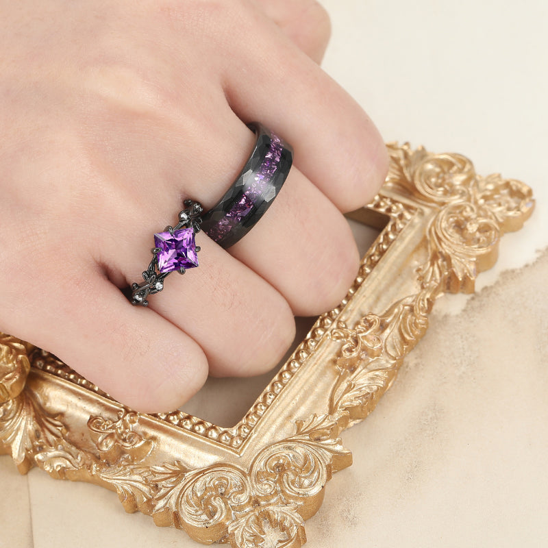 Metal Type: Tungsten Carbide - Crushed Natural Amethyst Inlay - Hypoallergenic