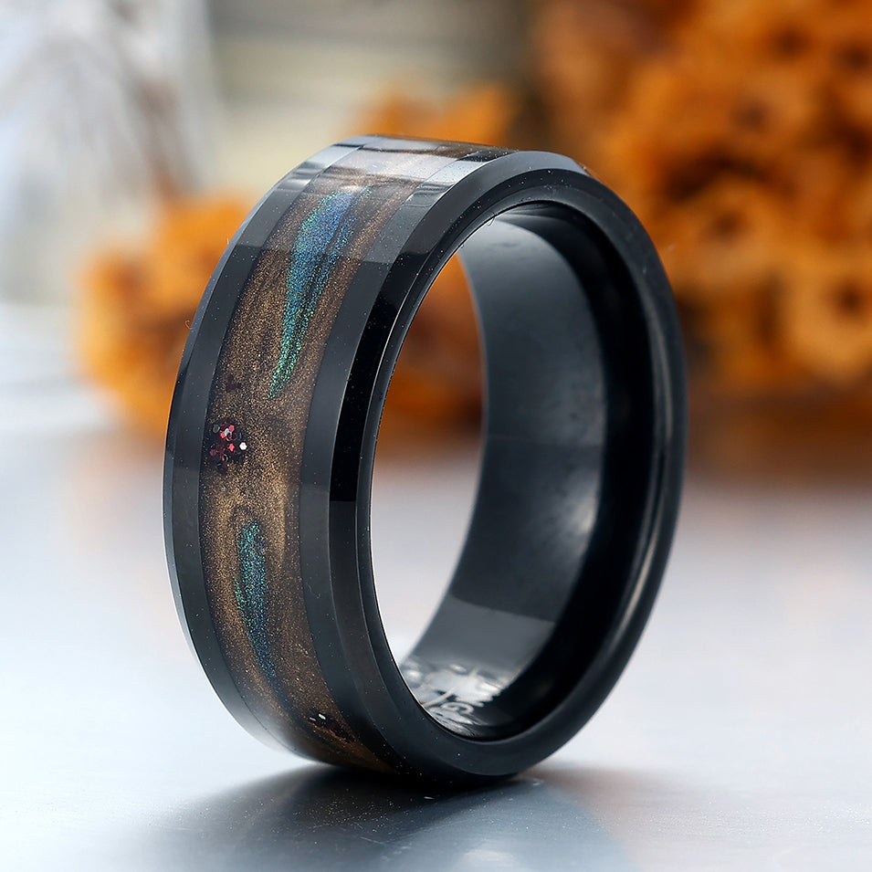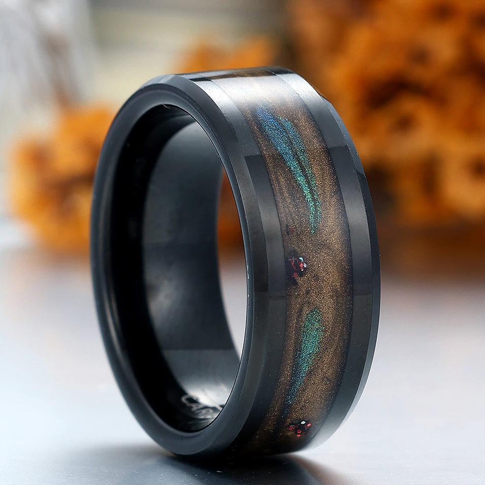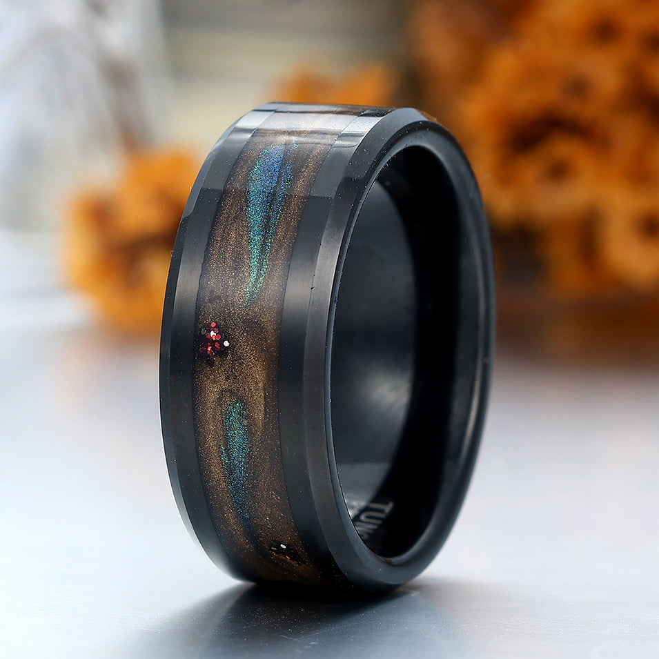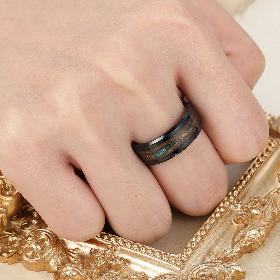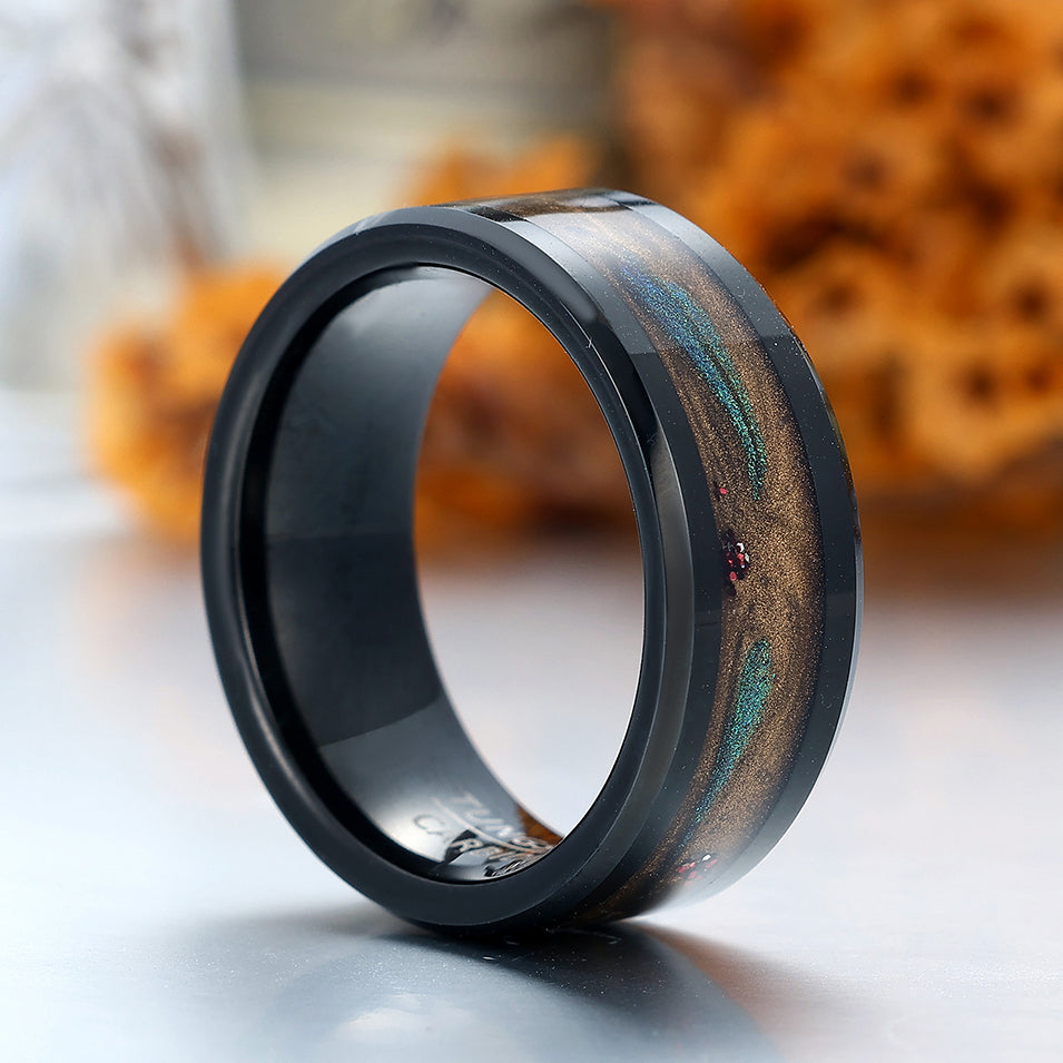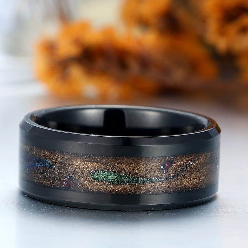 Galaxy Nebula Ring 8mm Quicksand Inlay Tungsten Promise Ring Unisex Wedding Band