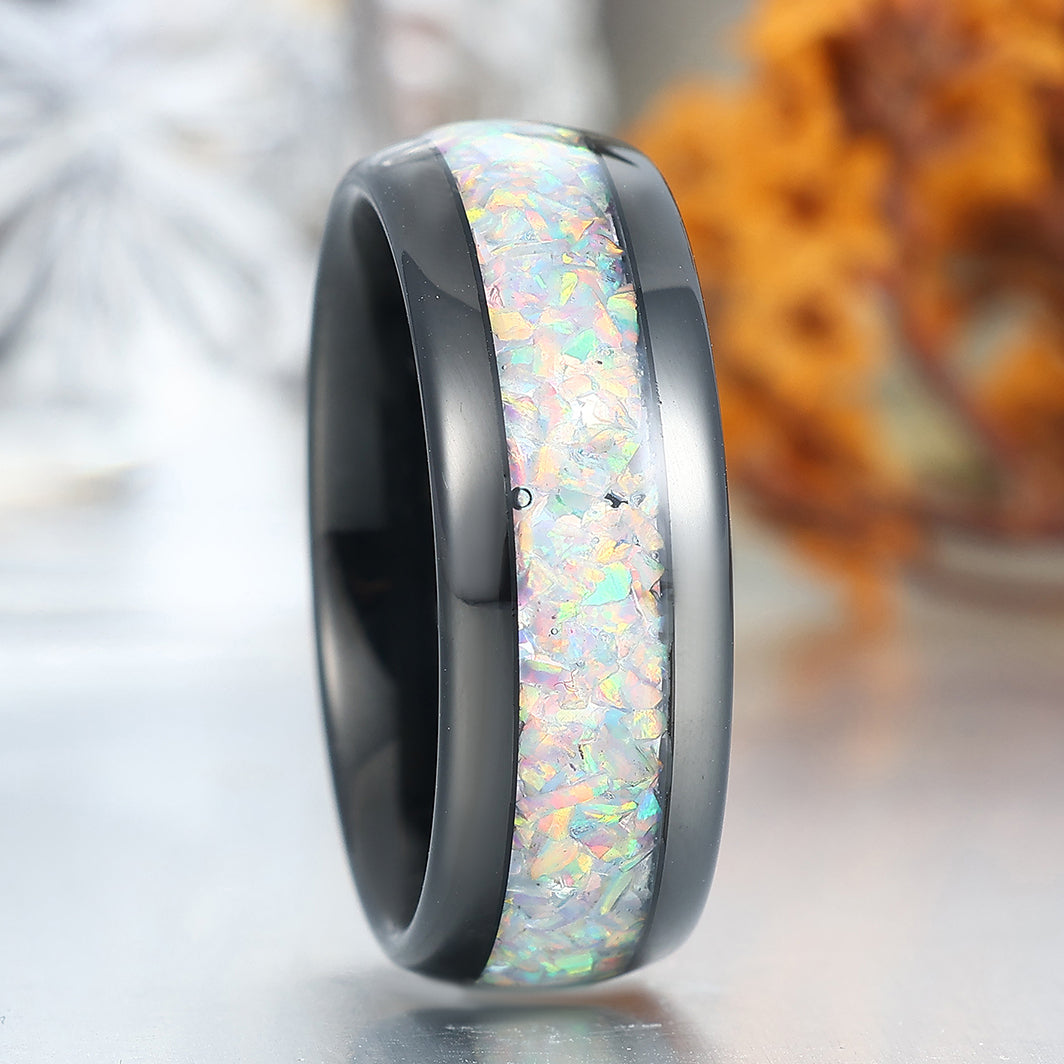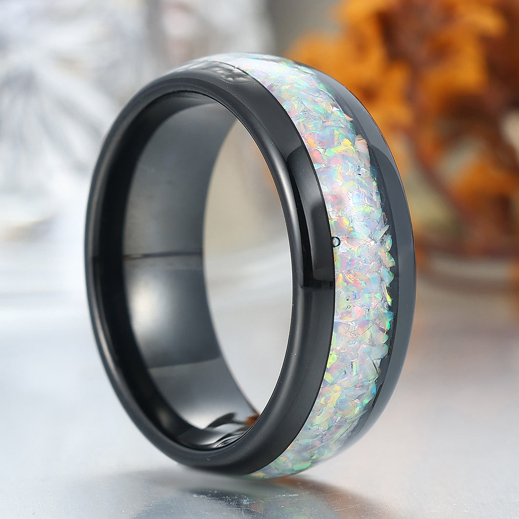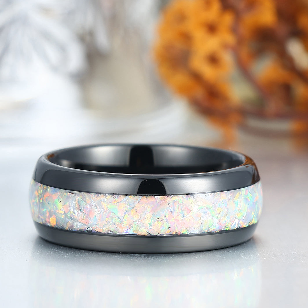 Metal Type: Tungsten Carbide - Crushed Lab White Opal Inlay - Hypoallergenic