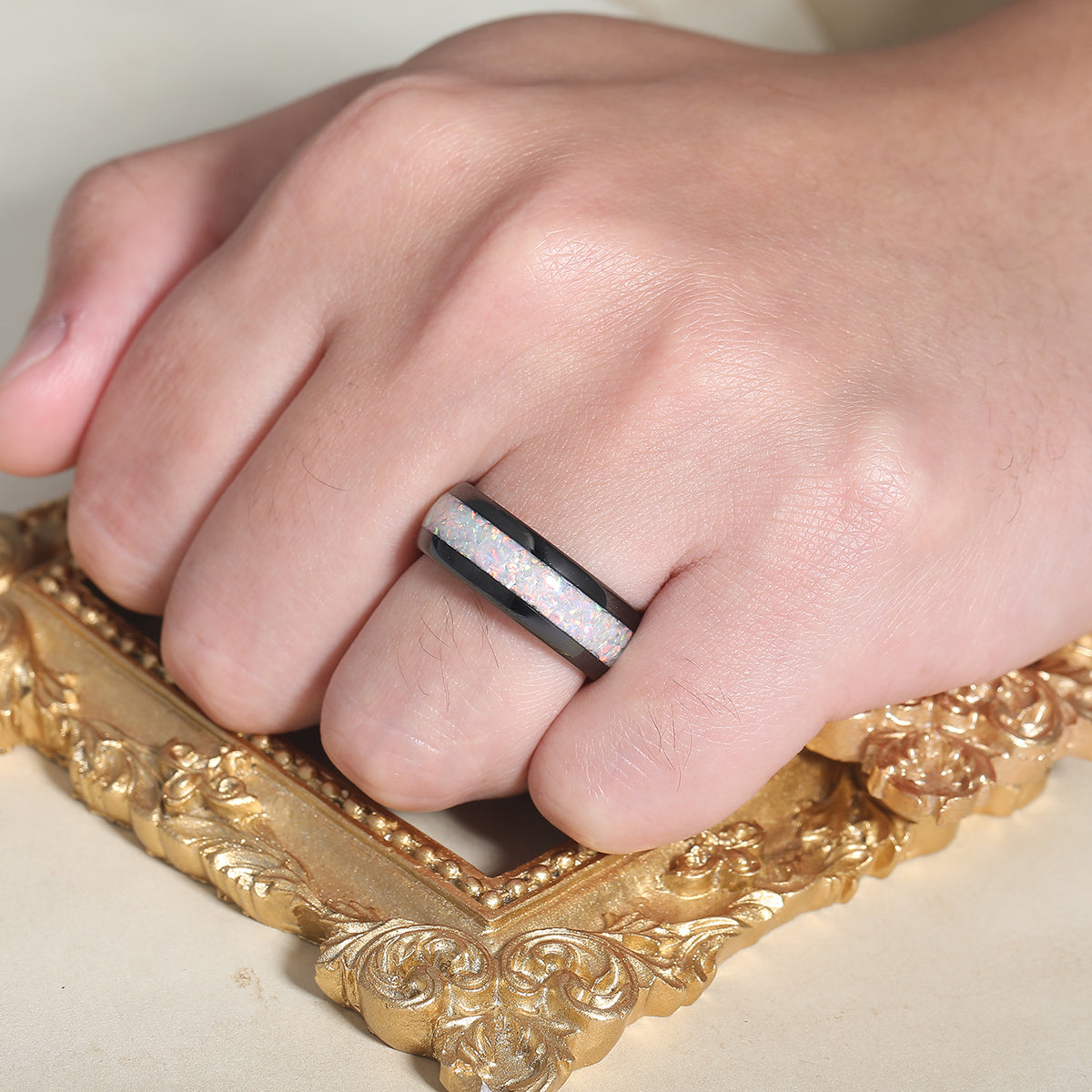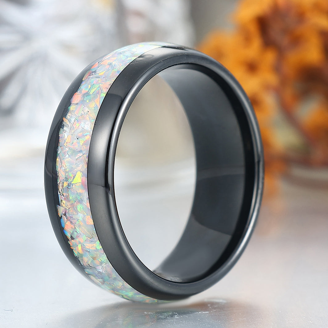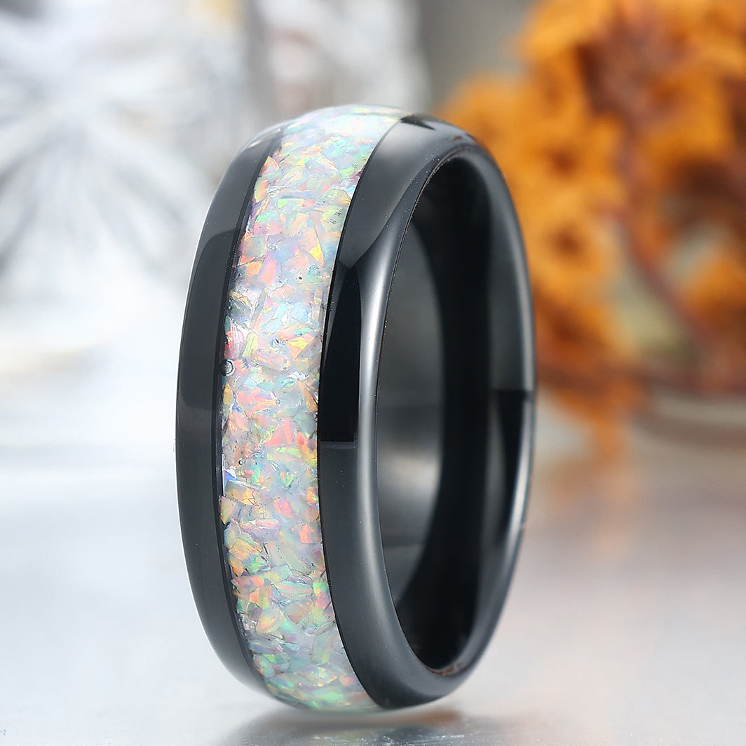 Metal Type: Tungsten Carbide - Crushed Lab White Opal Inlay - Hypoallergenic