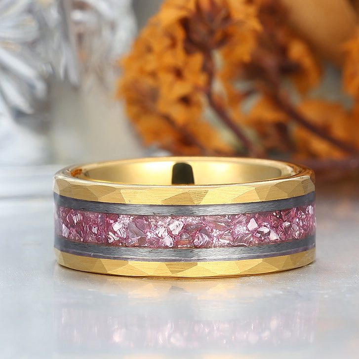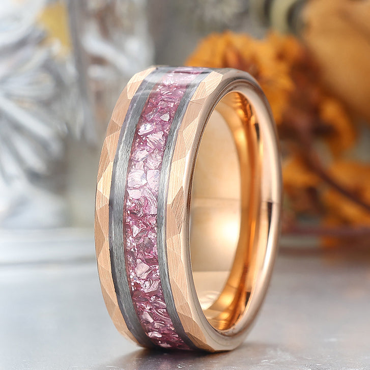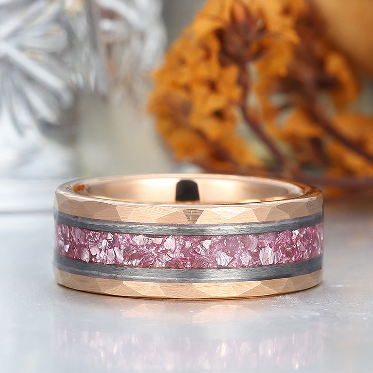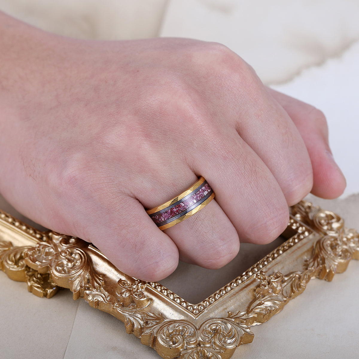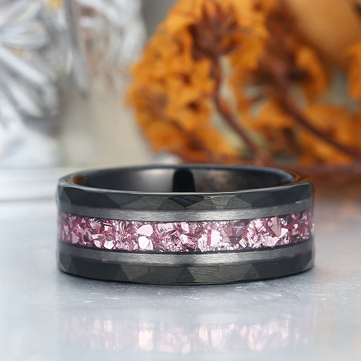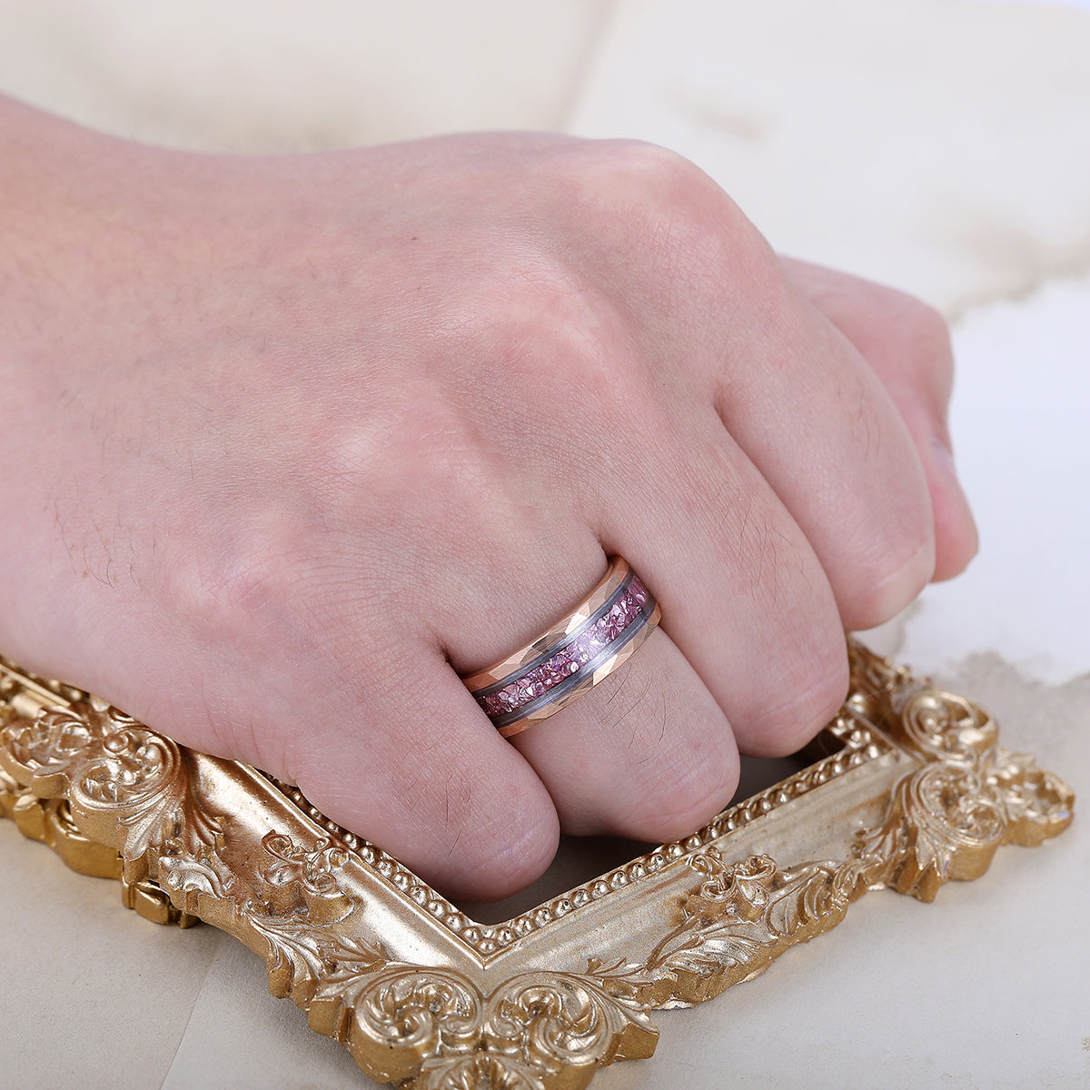 Metal Type: Tungsten Carbide - Crushed Lab Pink Sapphire Inlay - Hypoallergenic - Comfort Fit