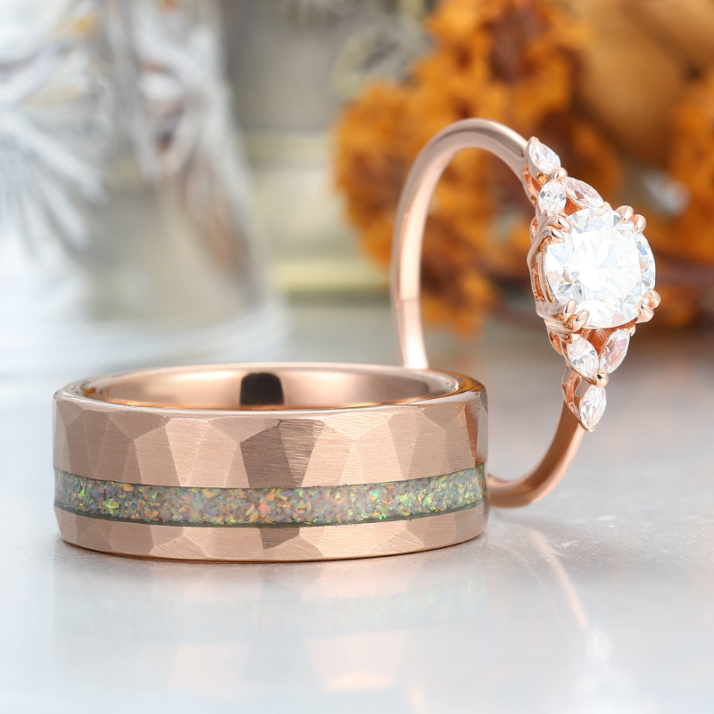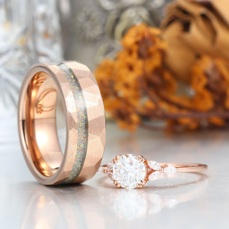 Metal Type: Tungsten Carbide with Lab Pink White Opal inlay