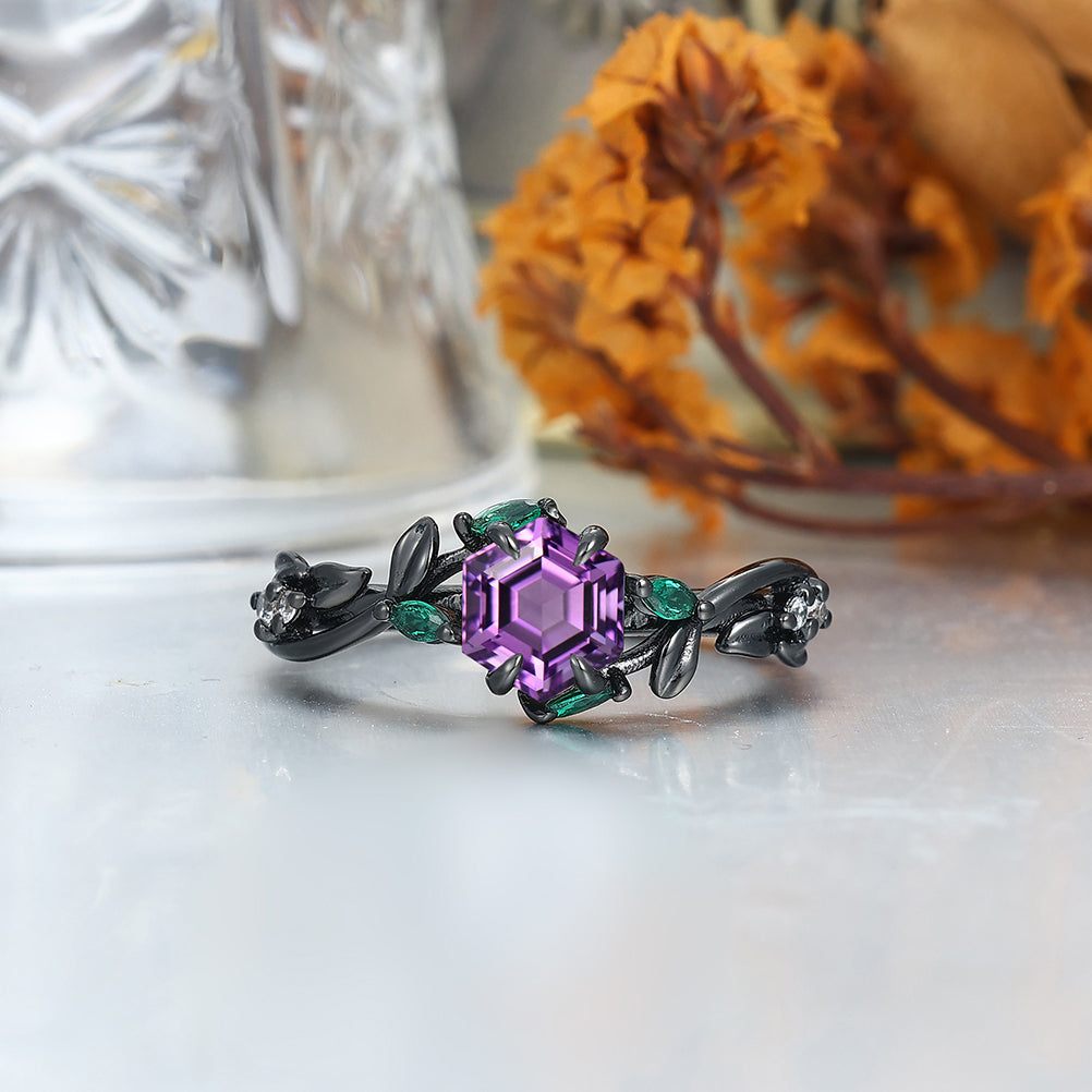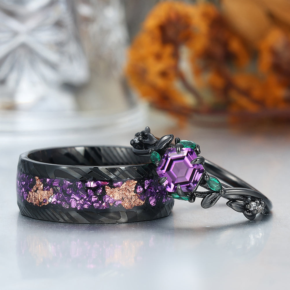 Nature-inspired Design Amethyst Sprig Engagement Rings Set For Couples Matching Promise Rings Couples Set