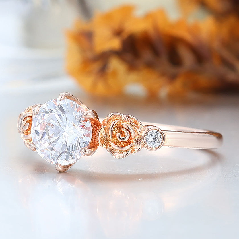 Noble 1 CT Round Cut Moissanite Rose Shaped Wedding Ring Women Fine Ring