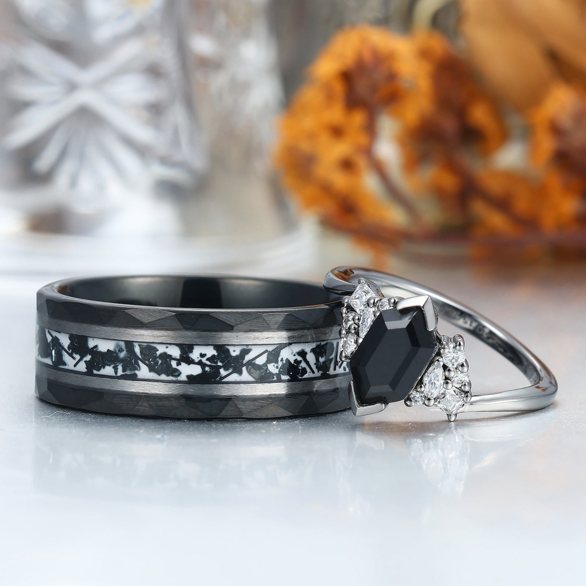 Noble Natural Black Onyx Accents Engagement Couples Ring Promise Wedding Bands For Men And Women