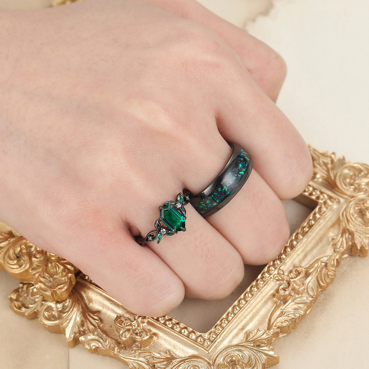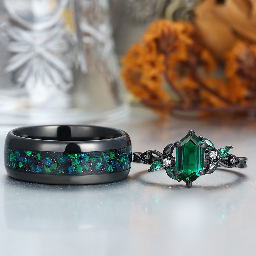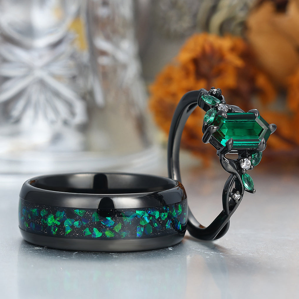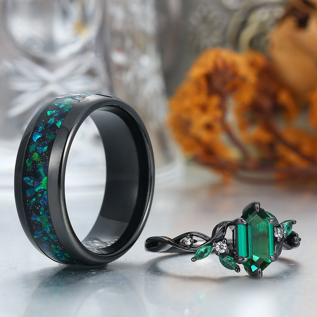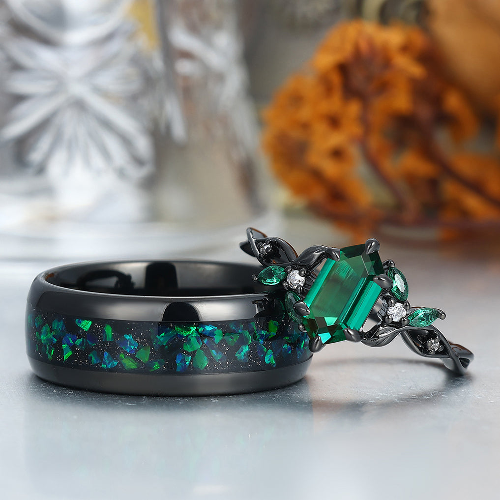 Personalized Emerald Blade Hollow Engagement Couple Rings Colorful Tungsten Wedding Band