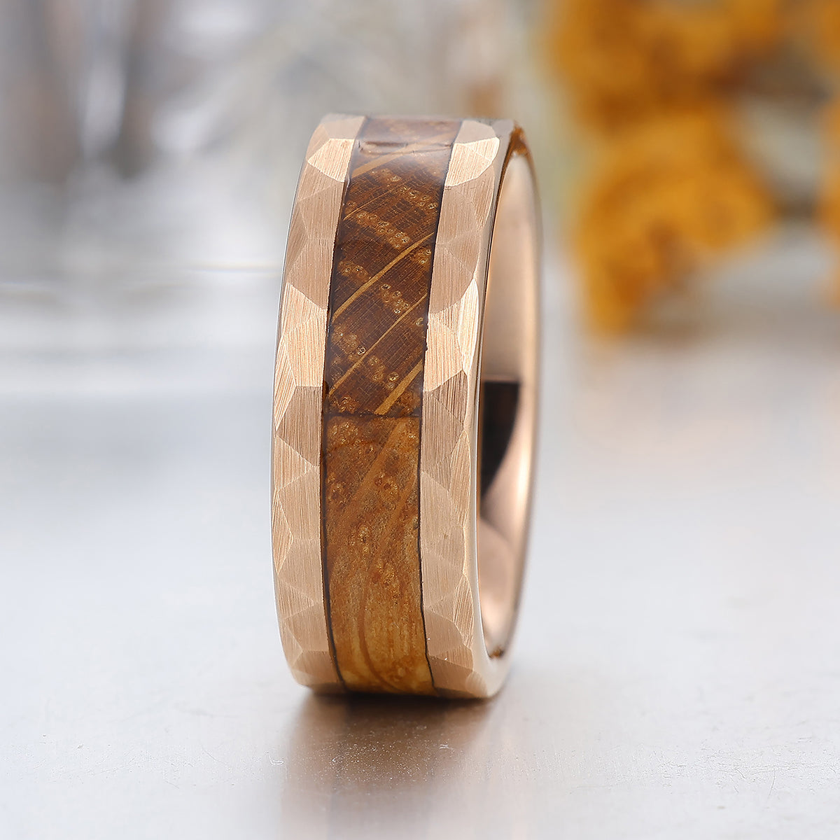 Personalized Wood Inlay Mens Tungsten Wedding Band Rose Gold Wooden Anniversary Unisex Ring