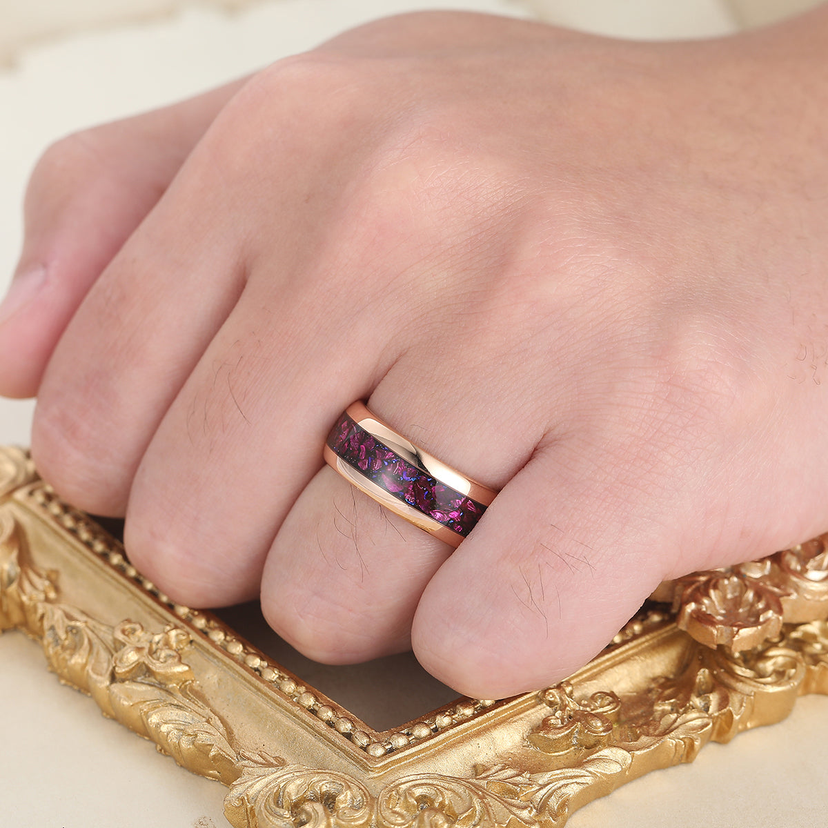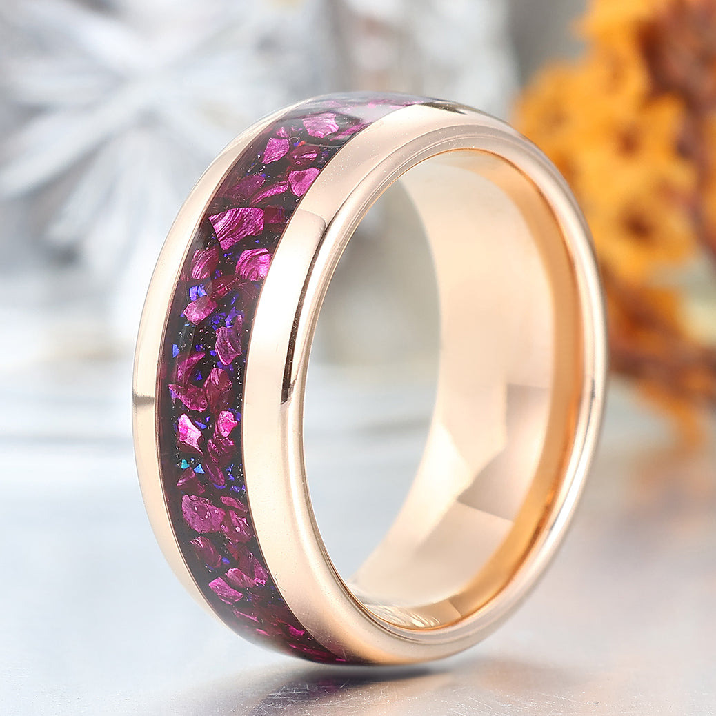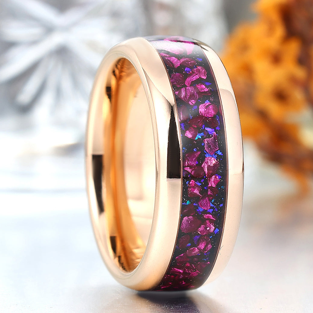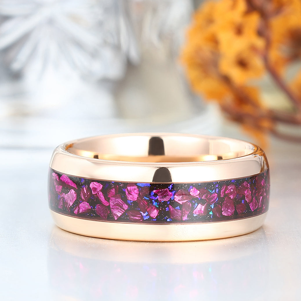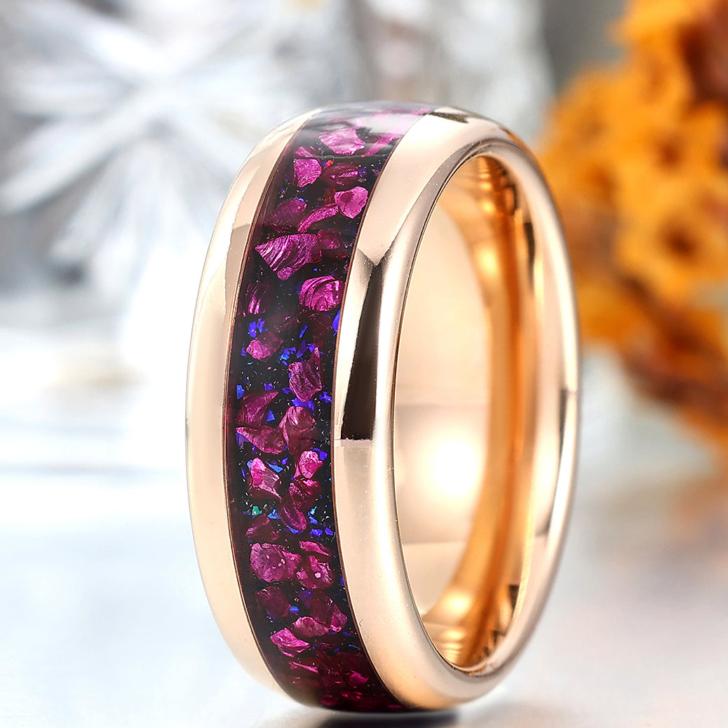 Polished Dome Amethyst Blue Sandstone Men's Ring Rose Gold Plated Tungsten Ring