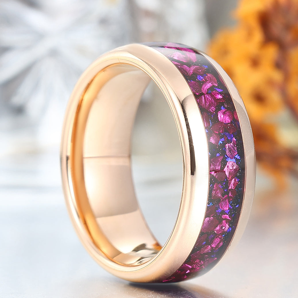 Metal Type: Tungsten Carbide - Crushed Amethyst and Lab Grown Blue Sandstone Inlay - Hypoallergenic