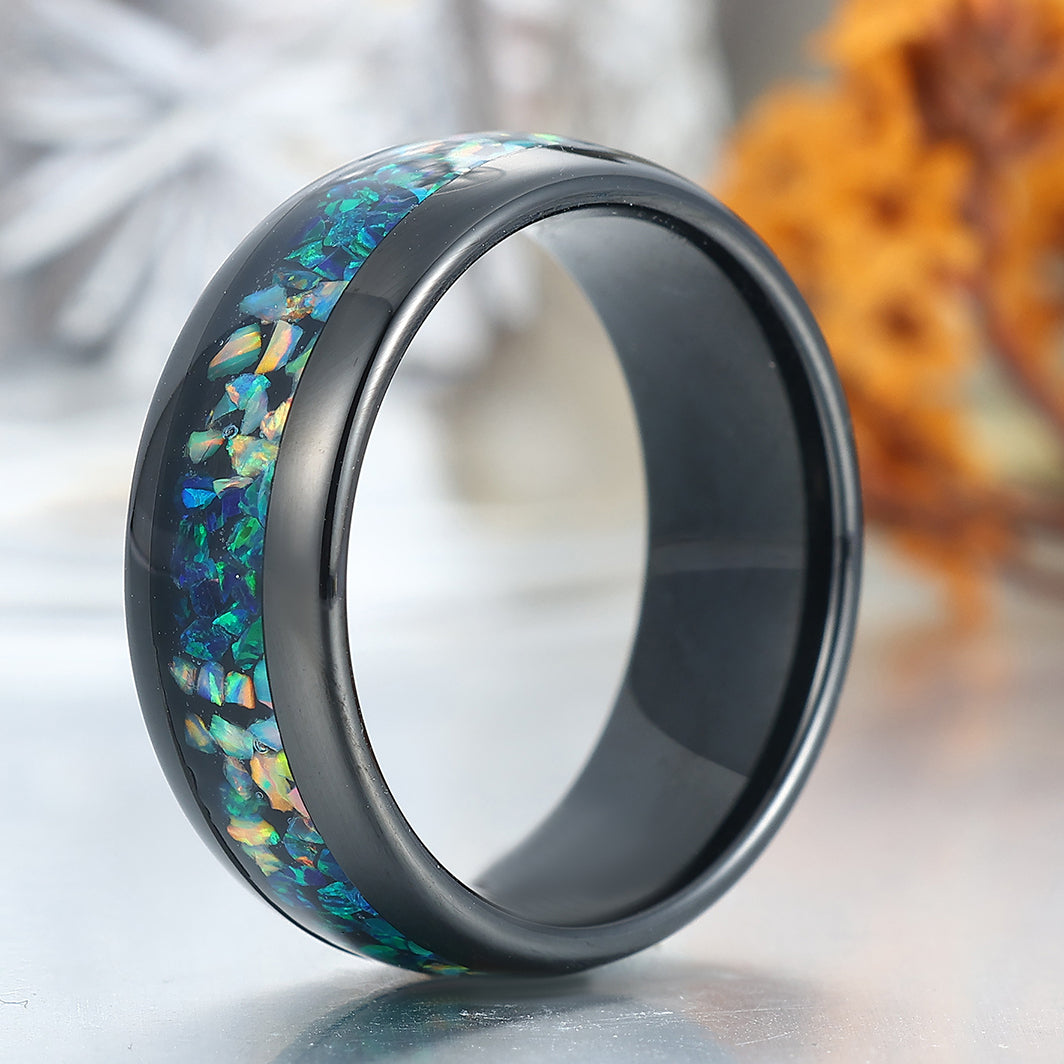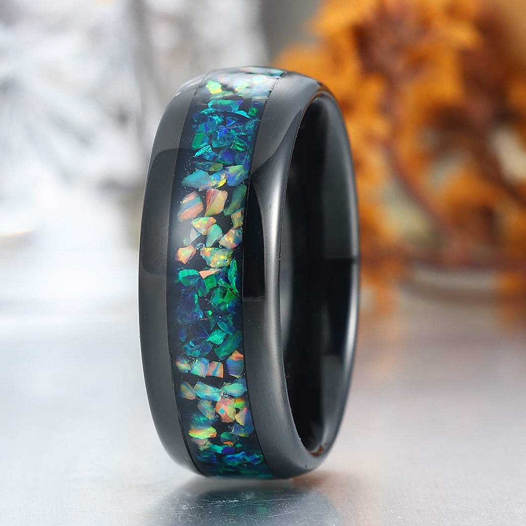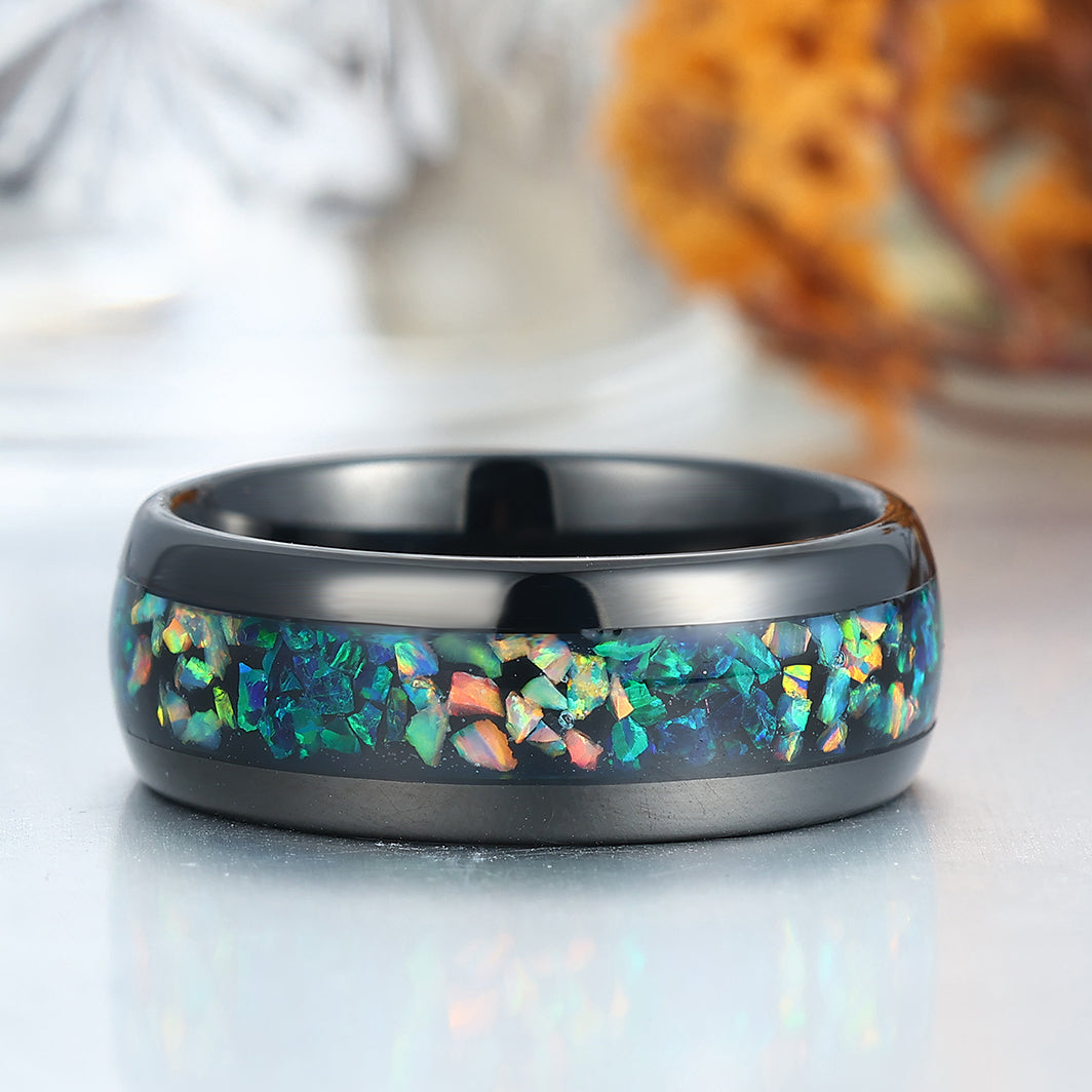 Metal Type: Tungsten Carbide - Crushed Lab White Opal and Peacock Green Opal Inlay - Hypoallergenic