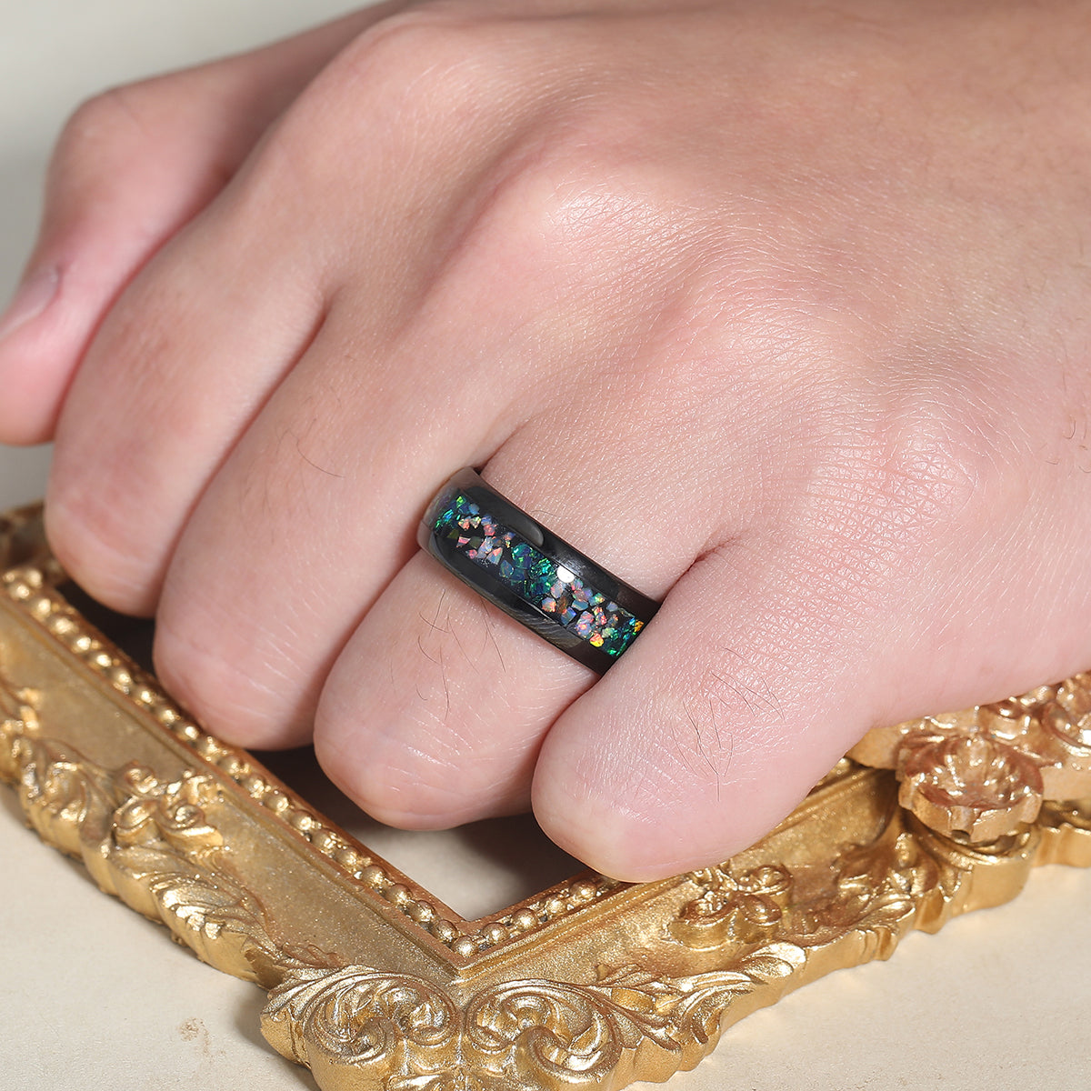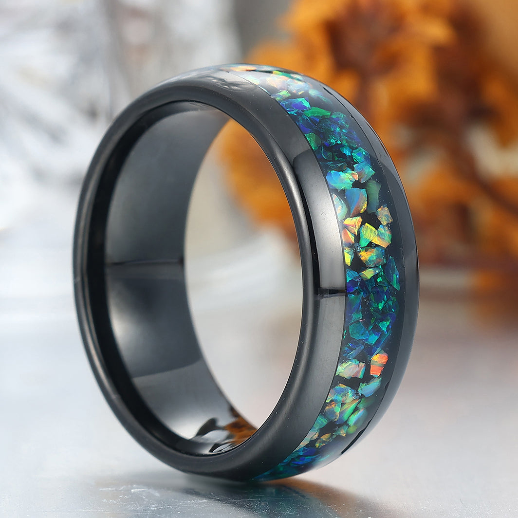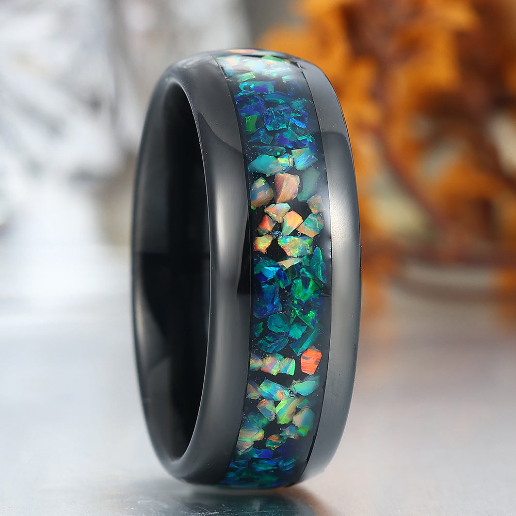 Metal Type: Tungsten Carbide - Crushed Lab White Opal and Peacock Green Opal Inlay - Hypoallergenic