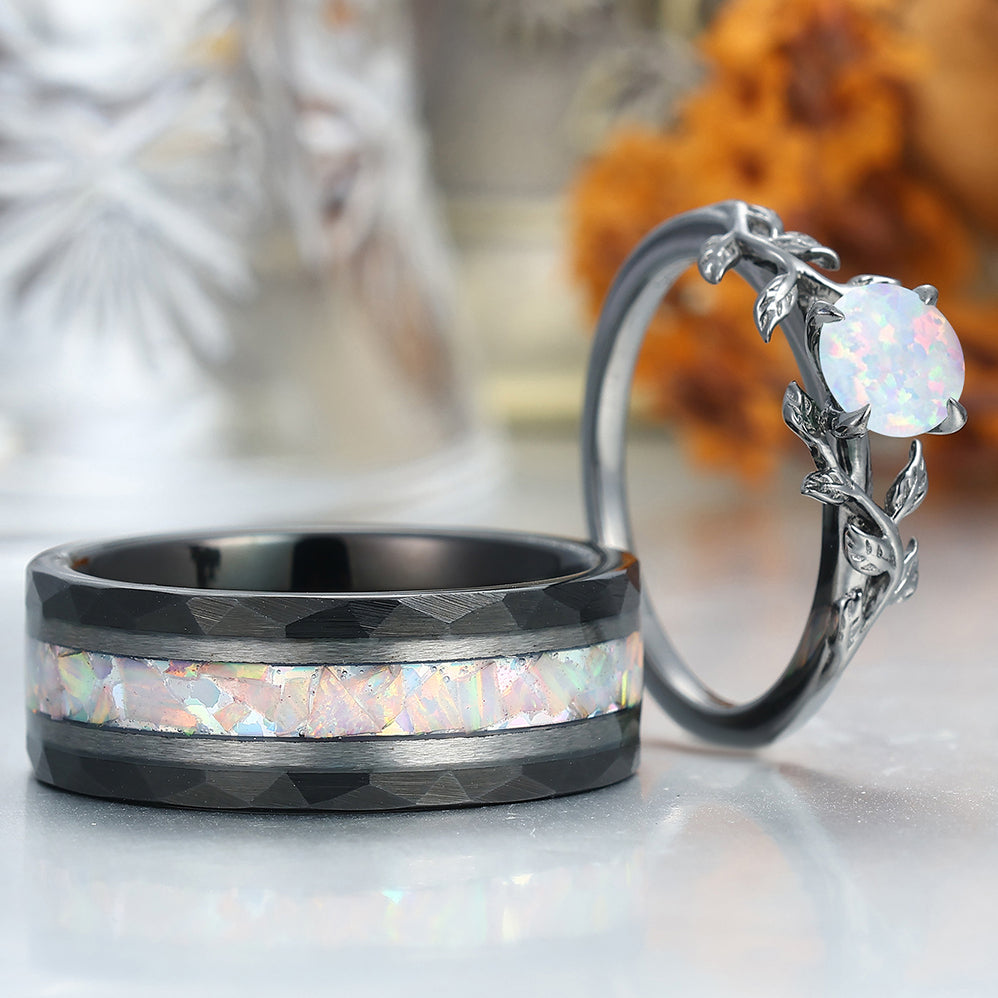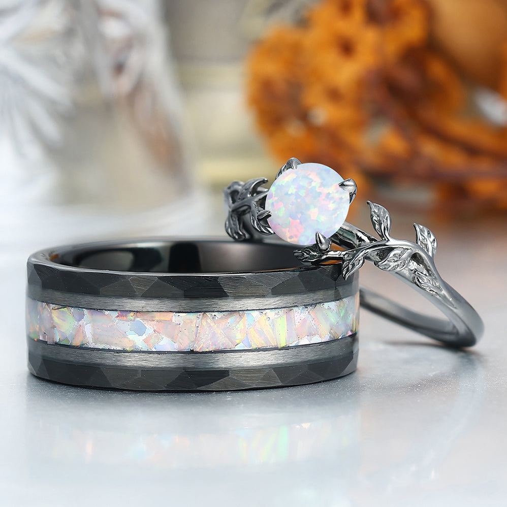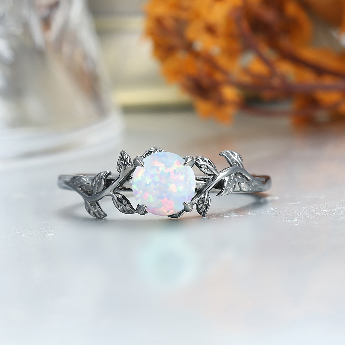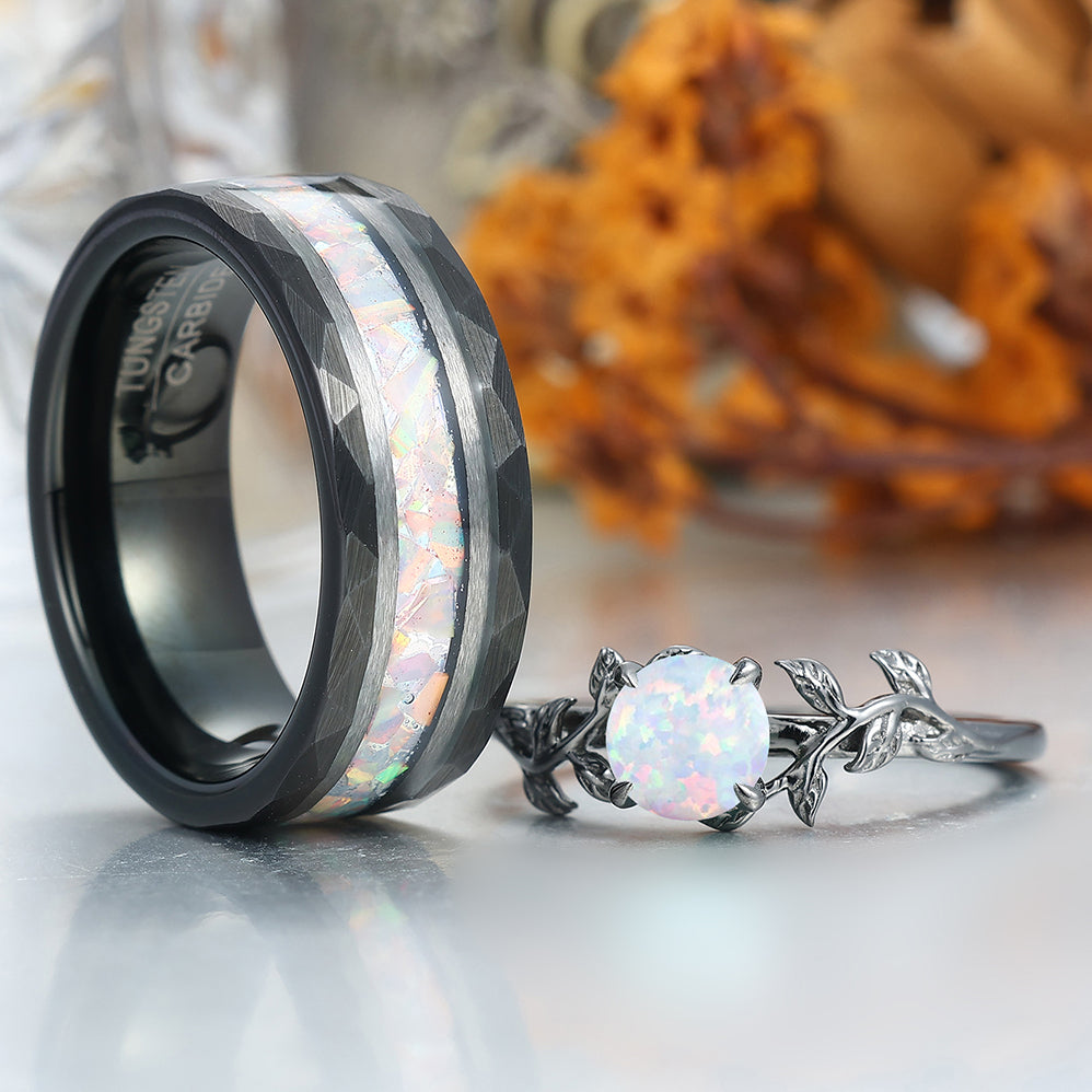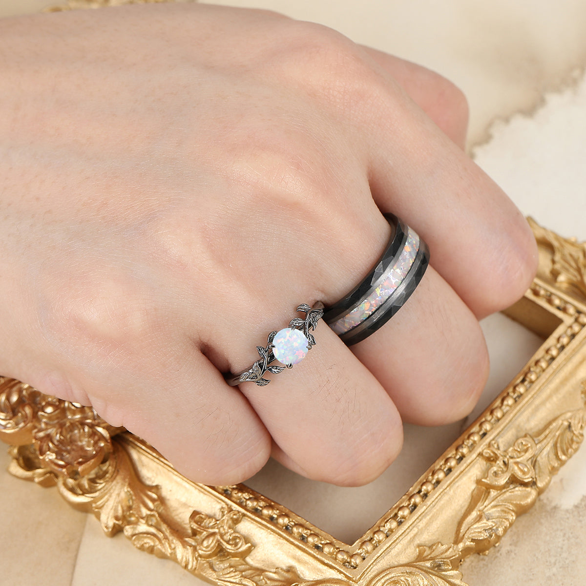 Solitaire Round Pink White Opal Engagement Couples Ring Anniversary Ring For Men And Women