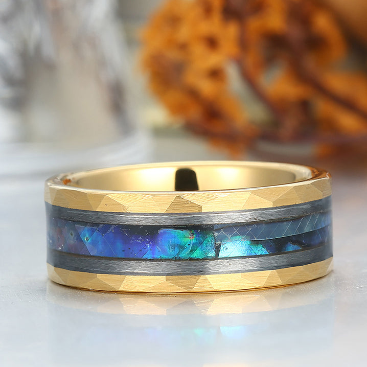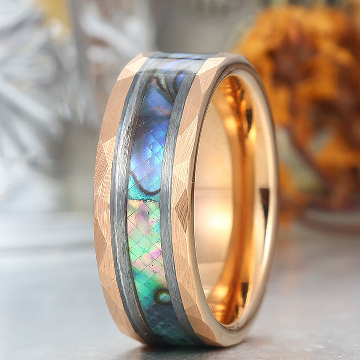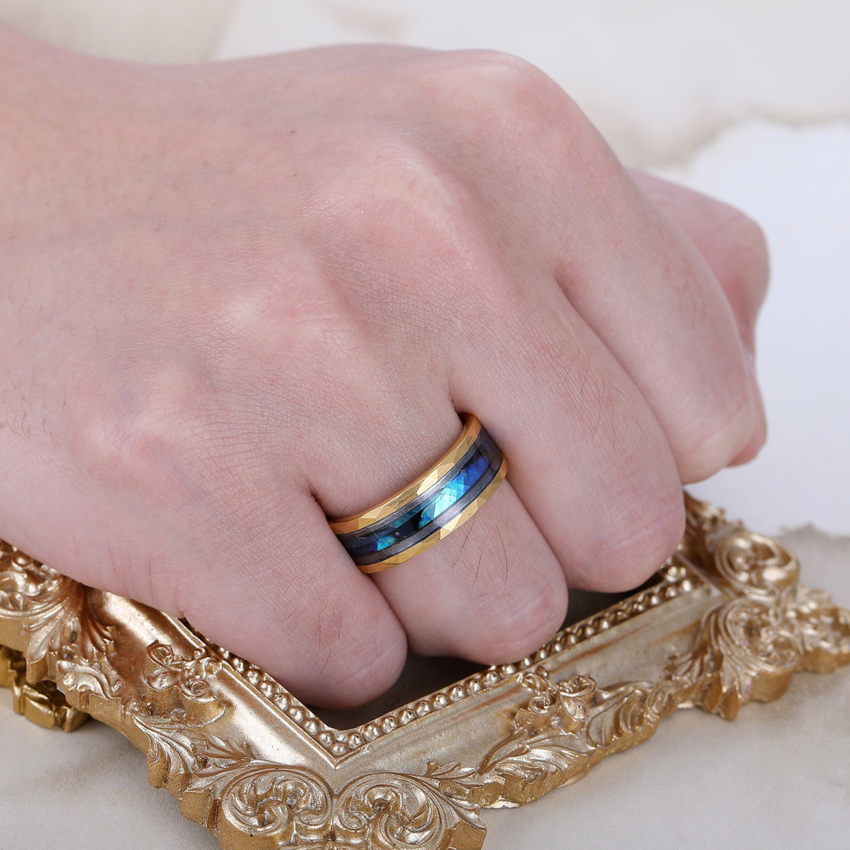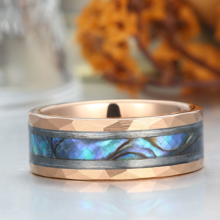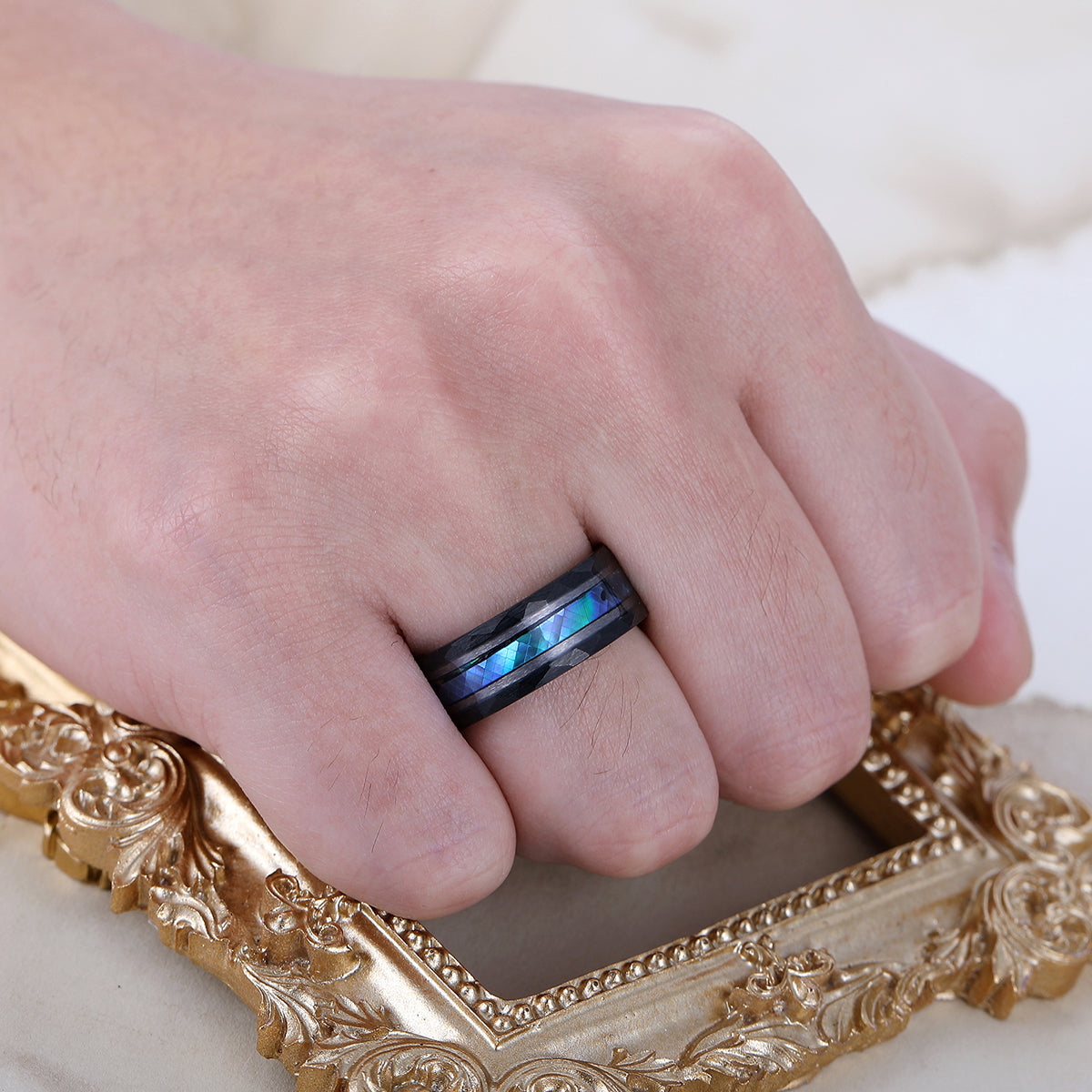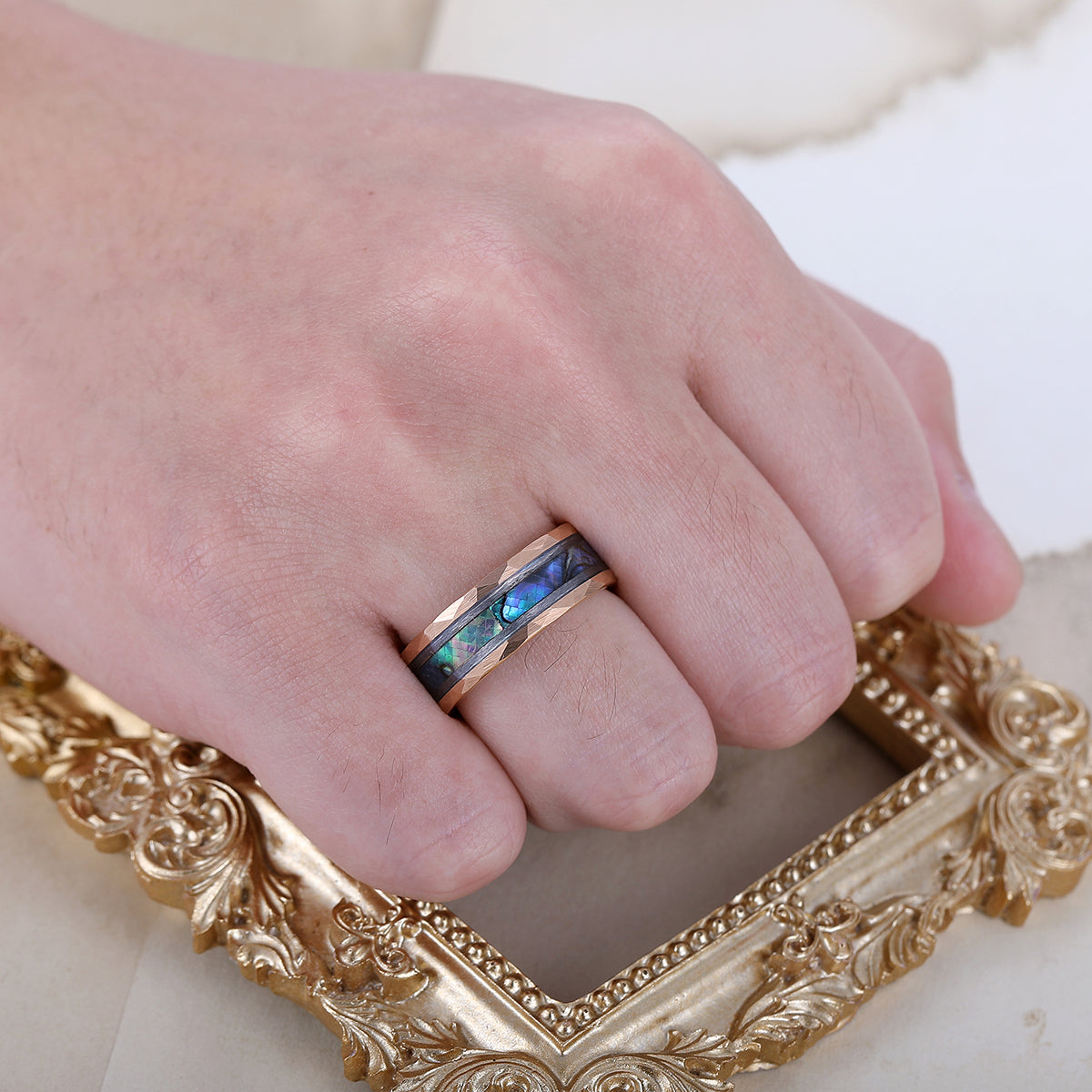 The beautifully crafted abalone shell, delicately inlaid on the tungsten band, creates a stunning and one-of-a-kind appearance on your finger. This exquisite design radiates the serene beauty of nature, evoking feelings of tropical warmth, love, and lasting commitment to your partner.