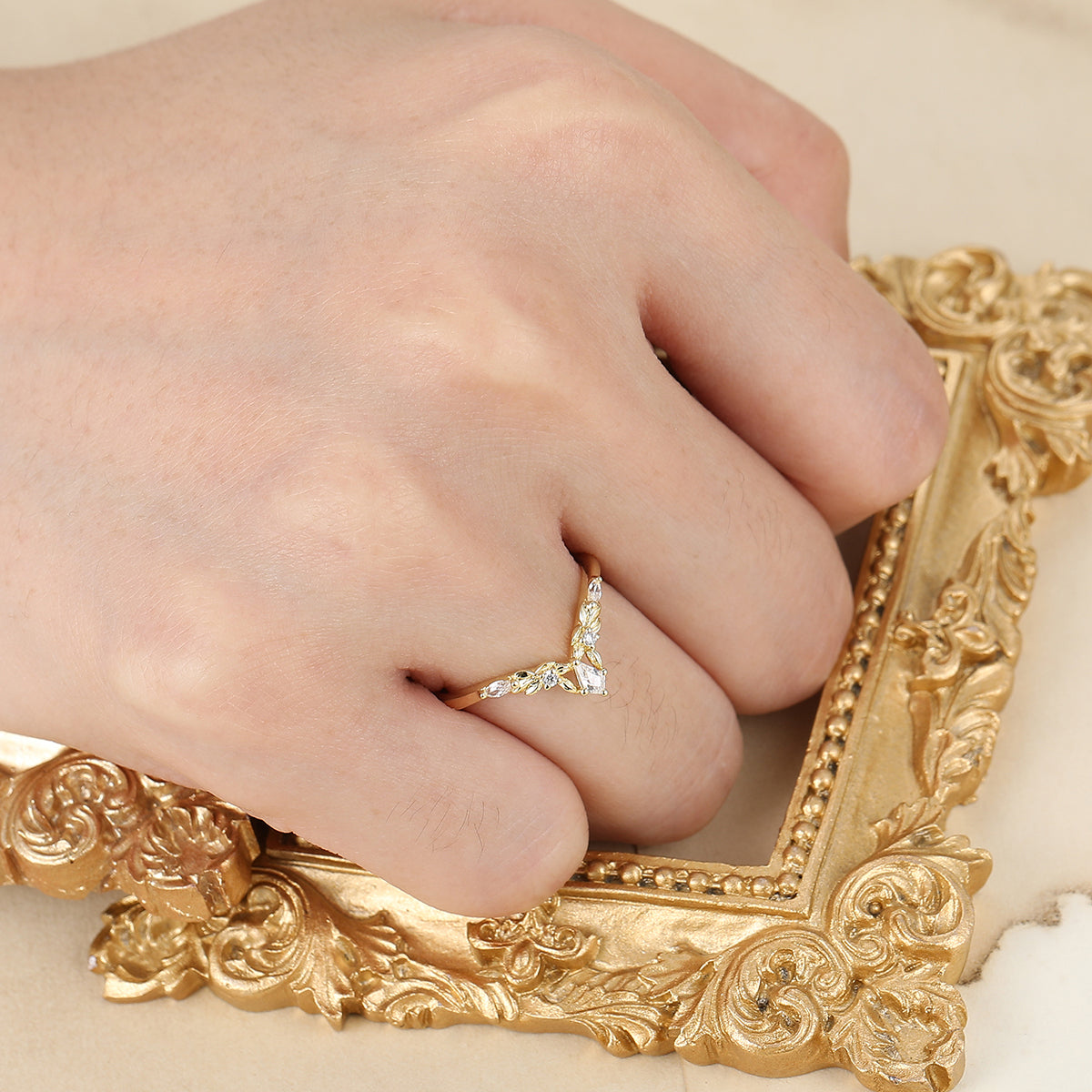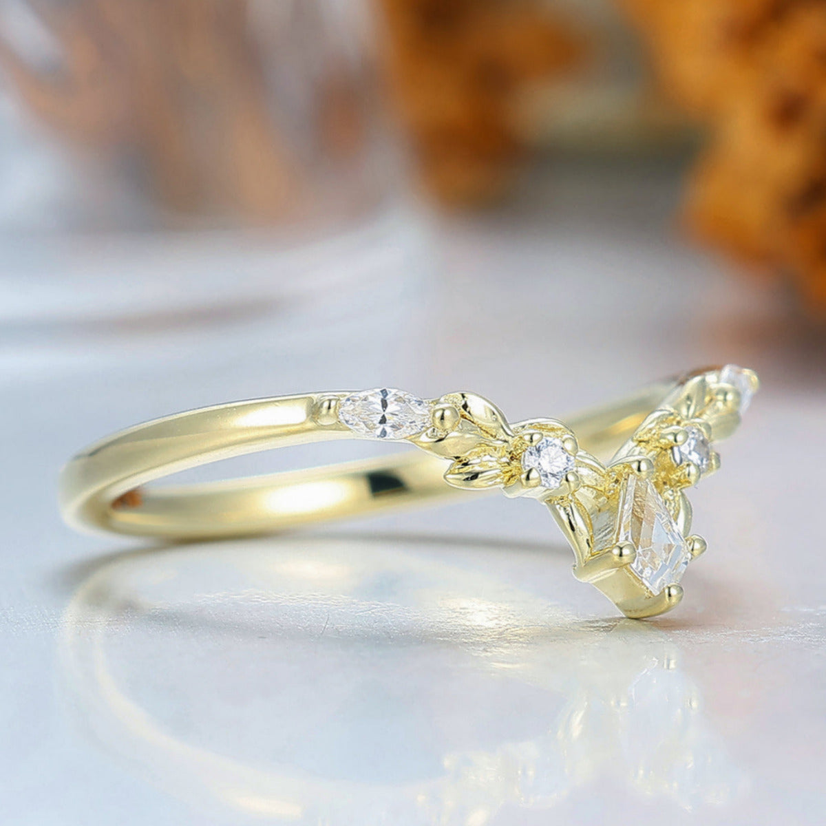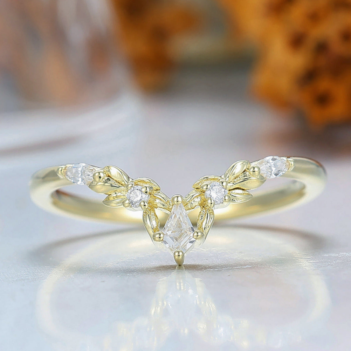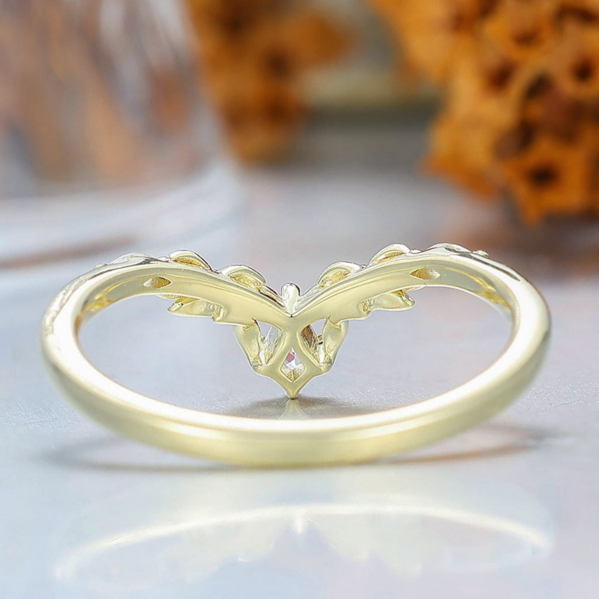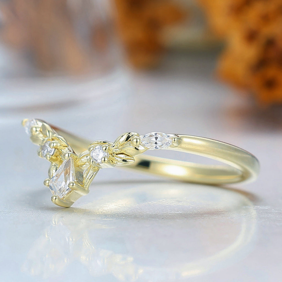Twig Floral Shape Moissanite Curved Band Solid Gold Bridal Anniversary Ring Leaf Inspired Wedding Band
