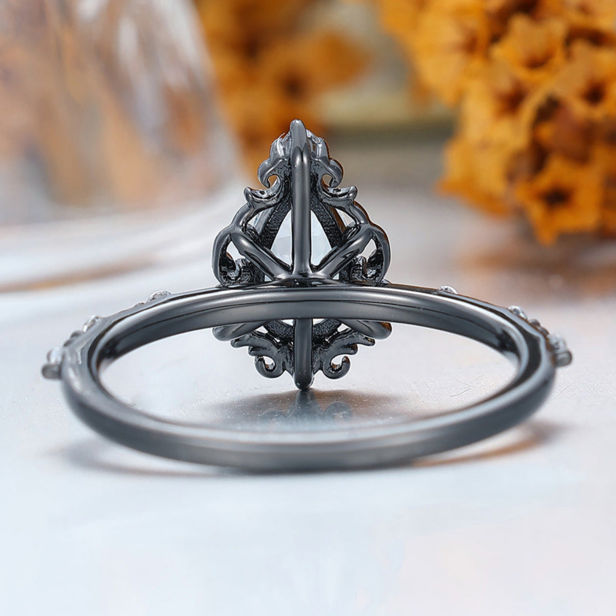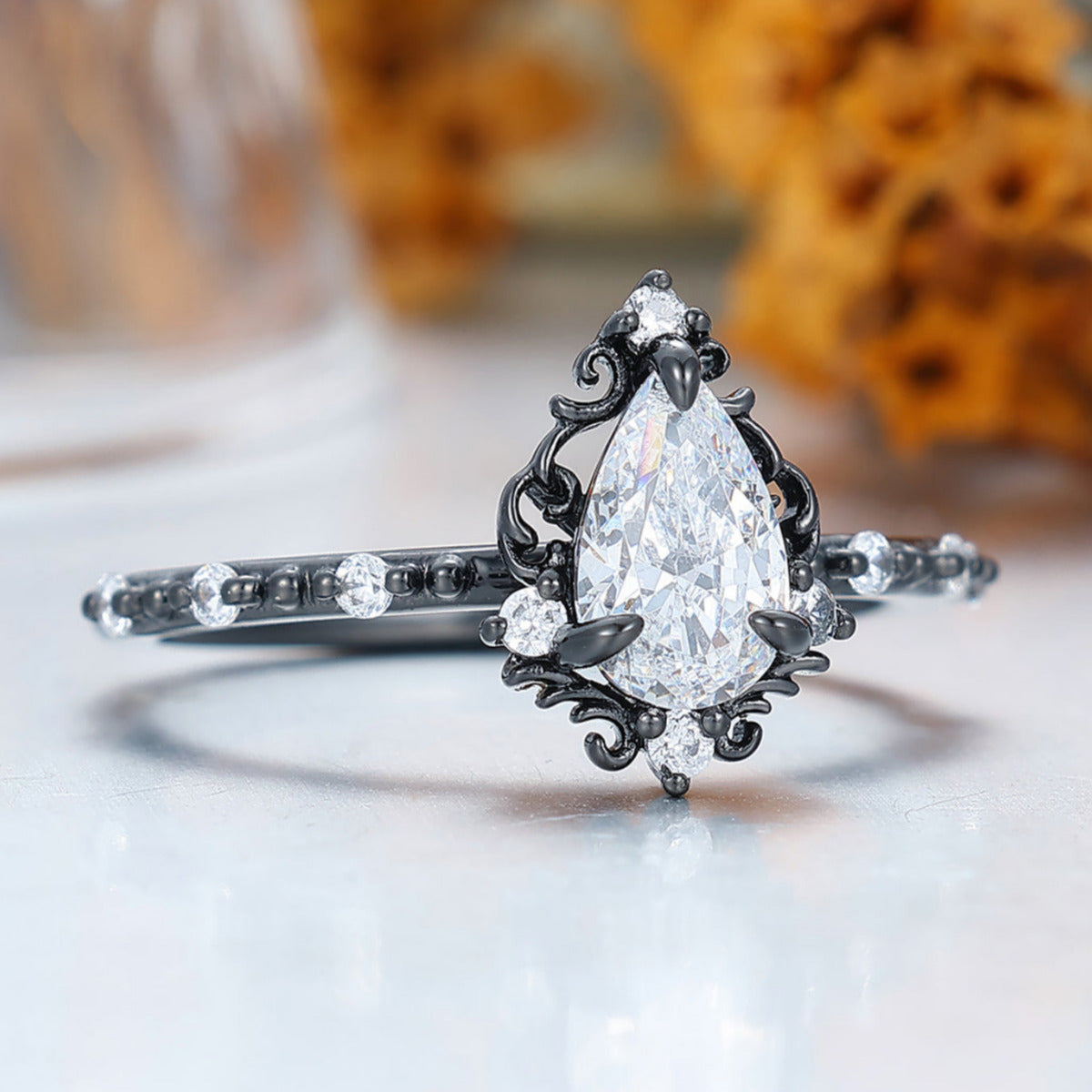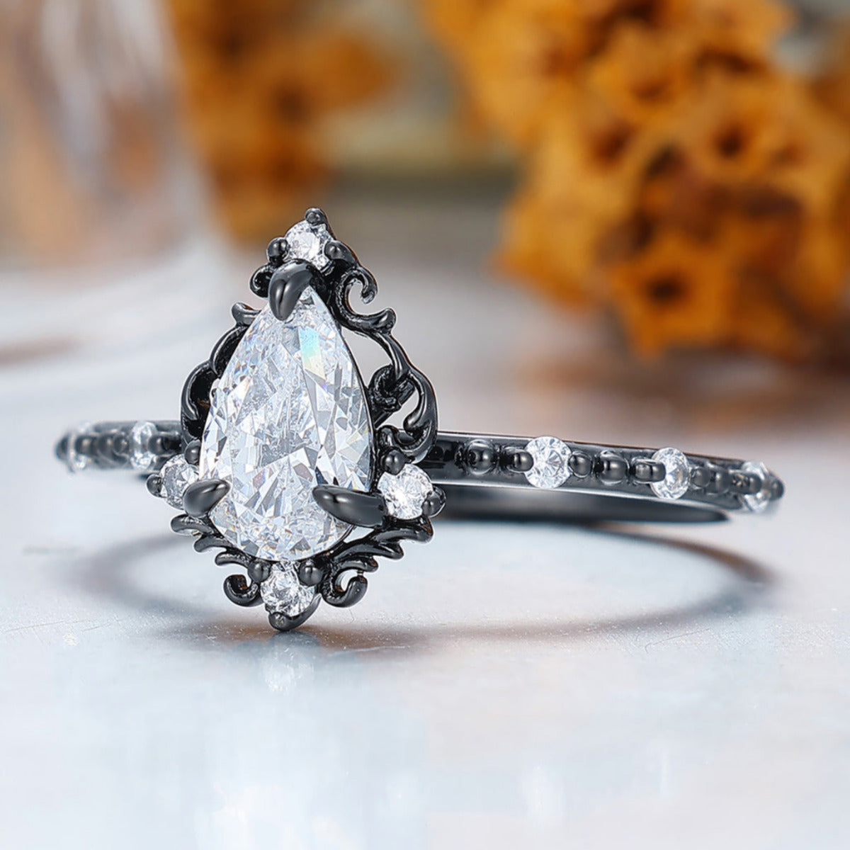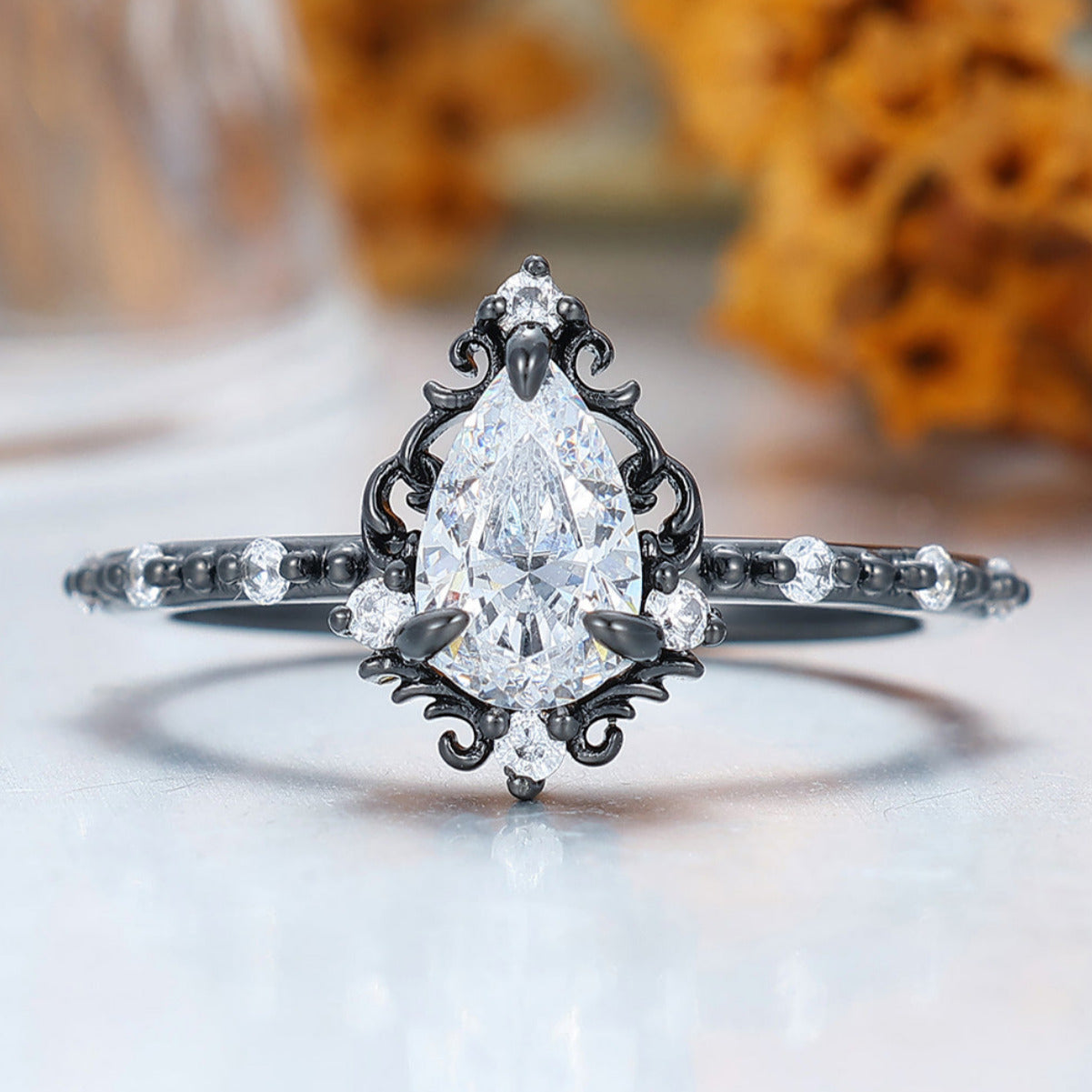 Unique 1.0 CT Pear Cut Moissanite Art Deco Leaf Gold & 925 Sliver Engagement Ring