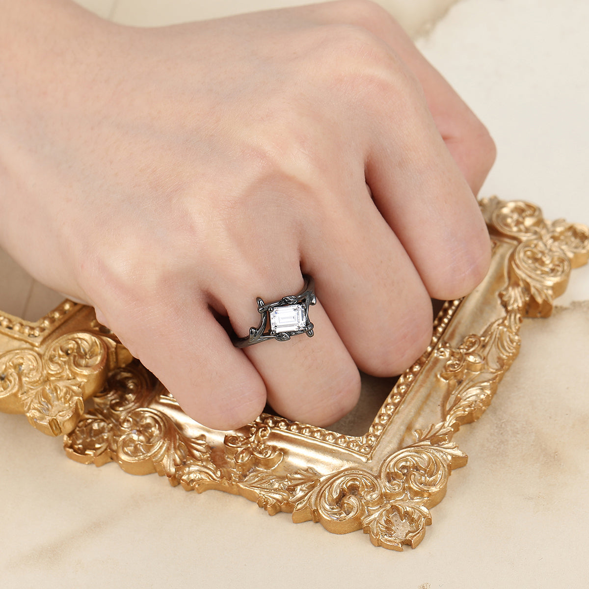 Unique Emerald Cut Branch Moissanite Engagement Ring Women Wedding Ring