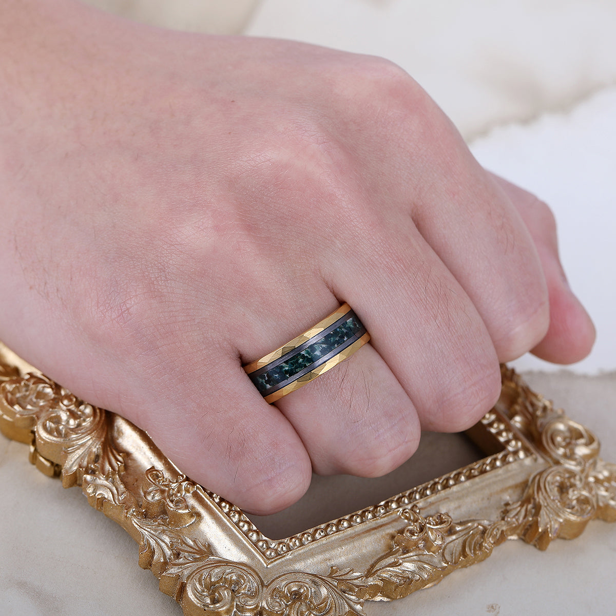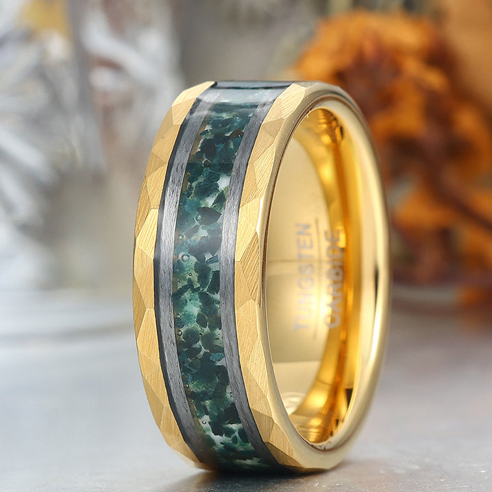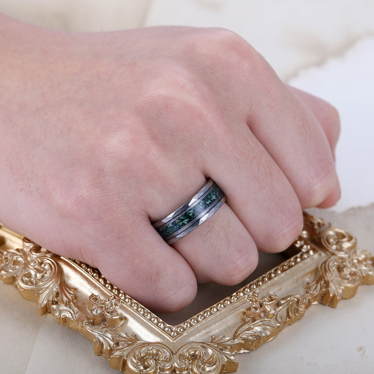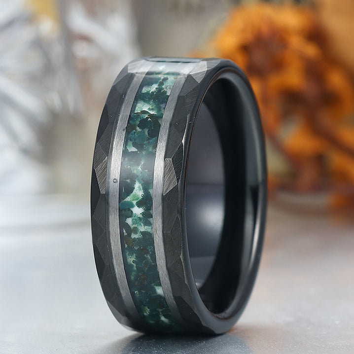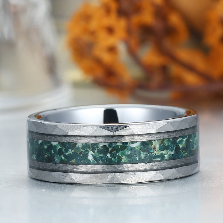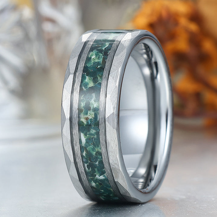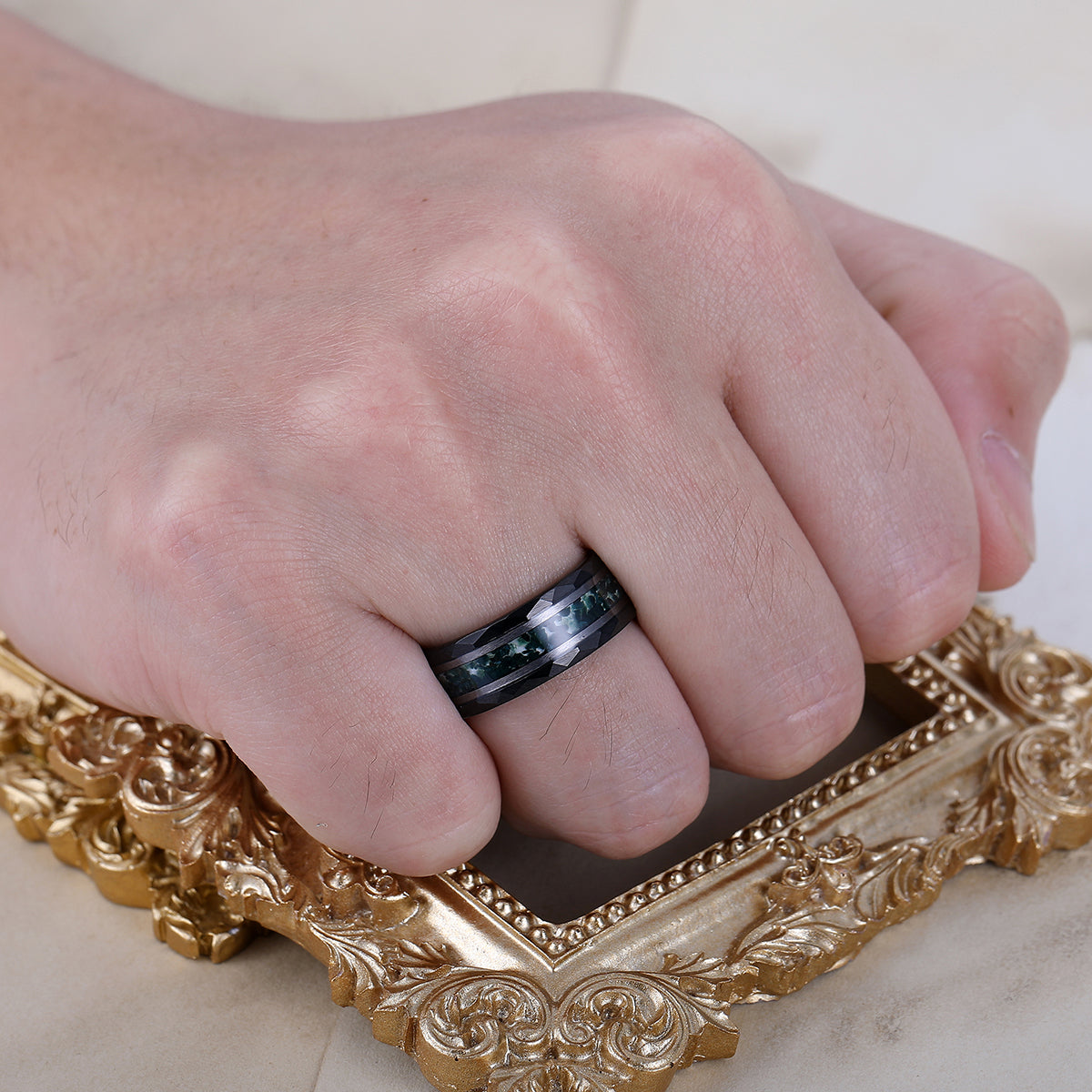 Metal Type: Tungsten Carbide - Natural Moss Agate Inlay - Hypoallergenic - Comfort Fit