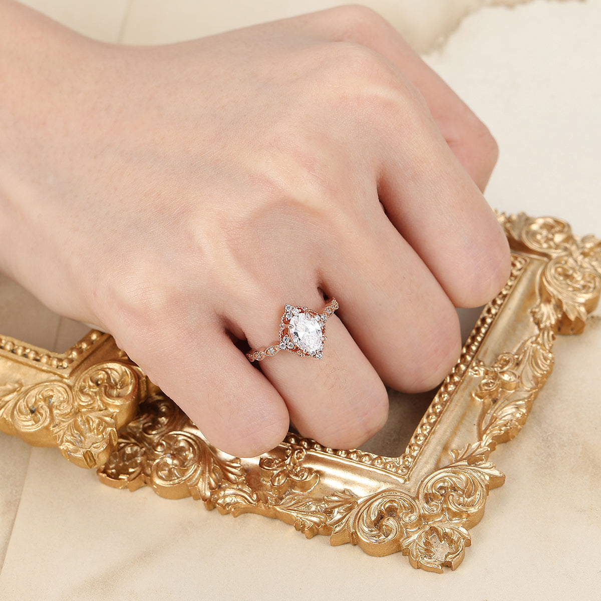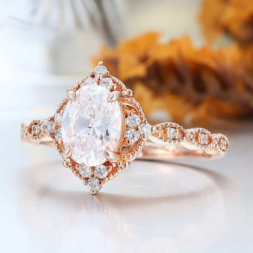 Vintag Oval Cut Moissanite Milgrained Wedding Ring Promise Bridal Ring