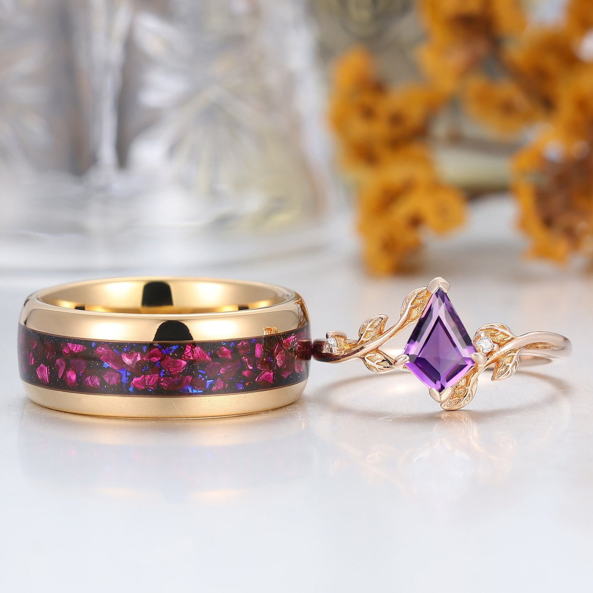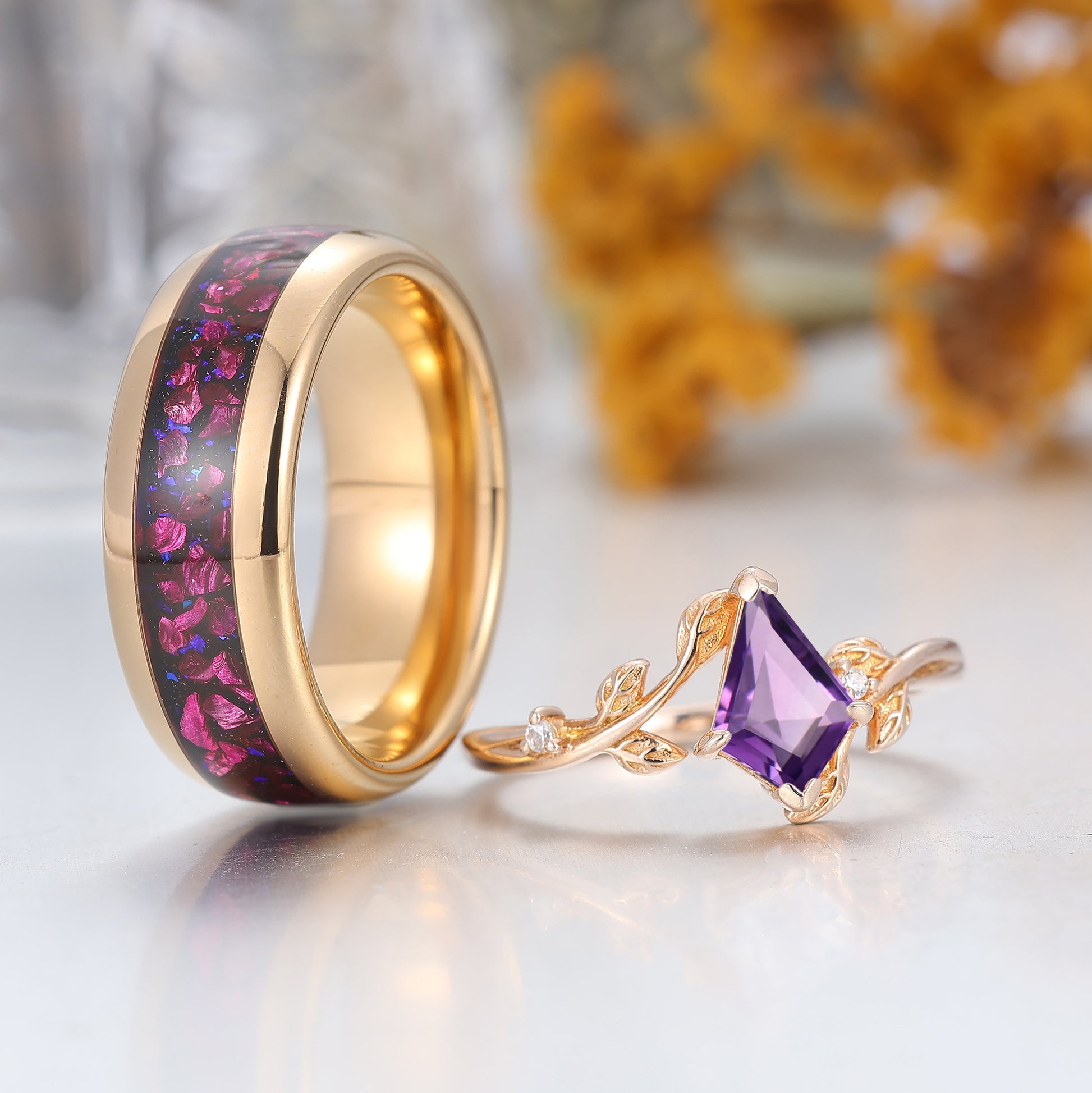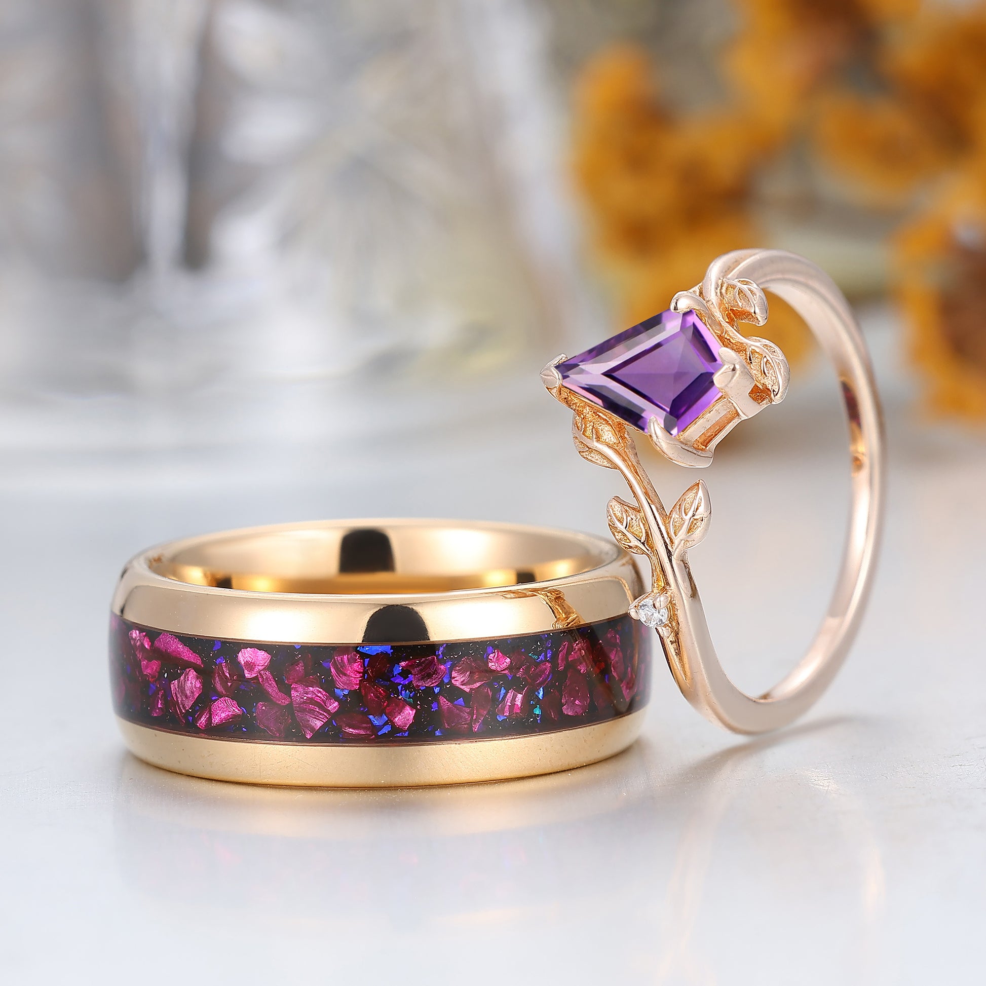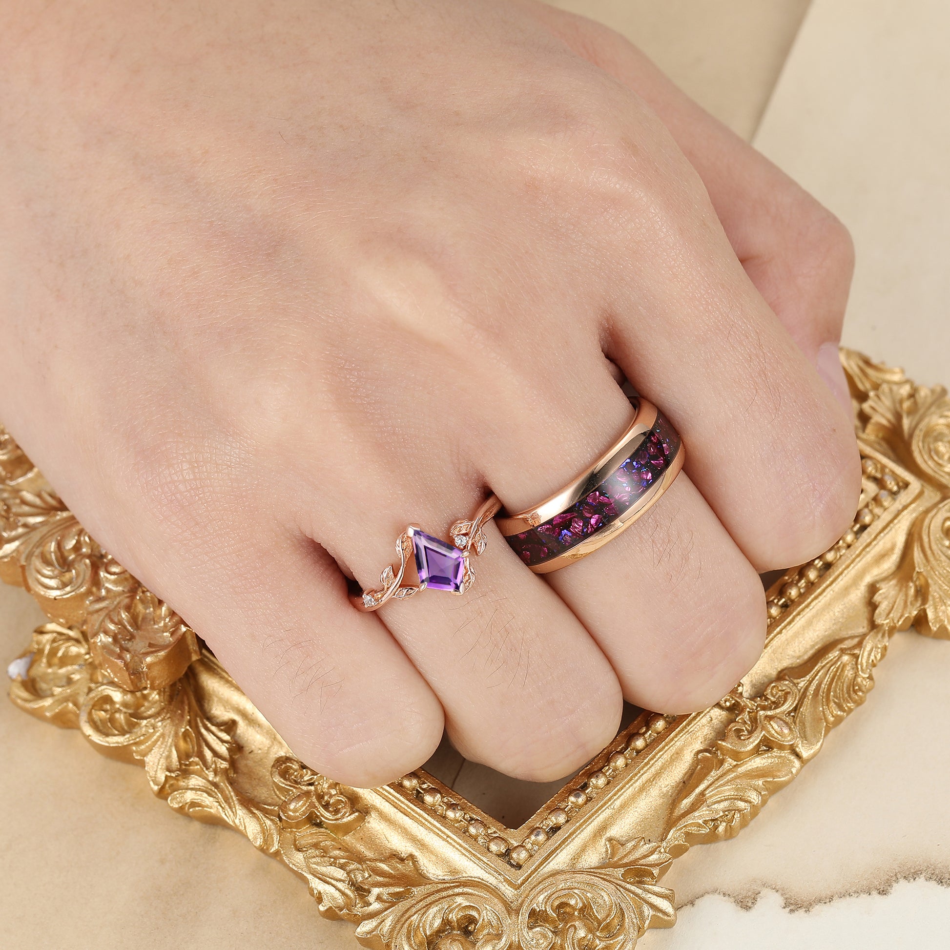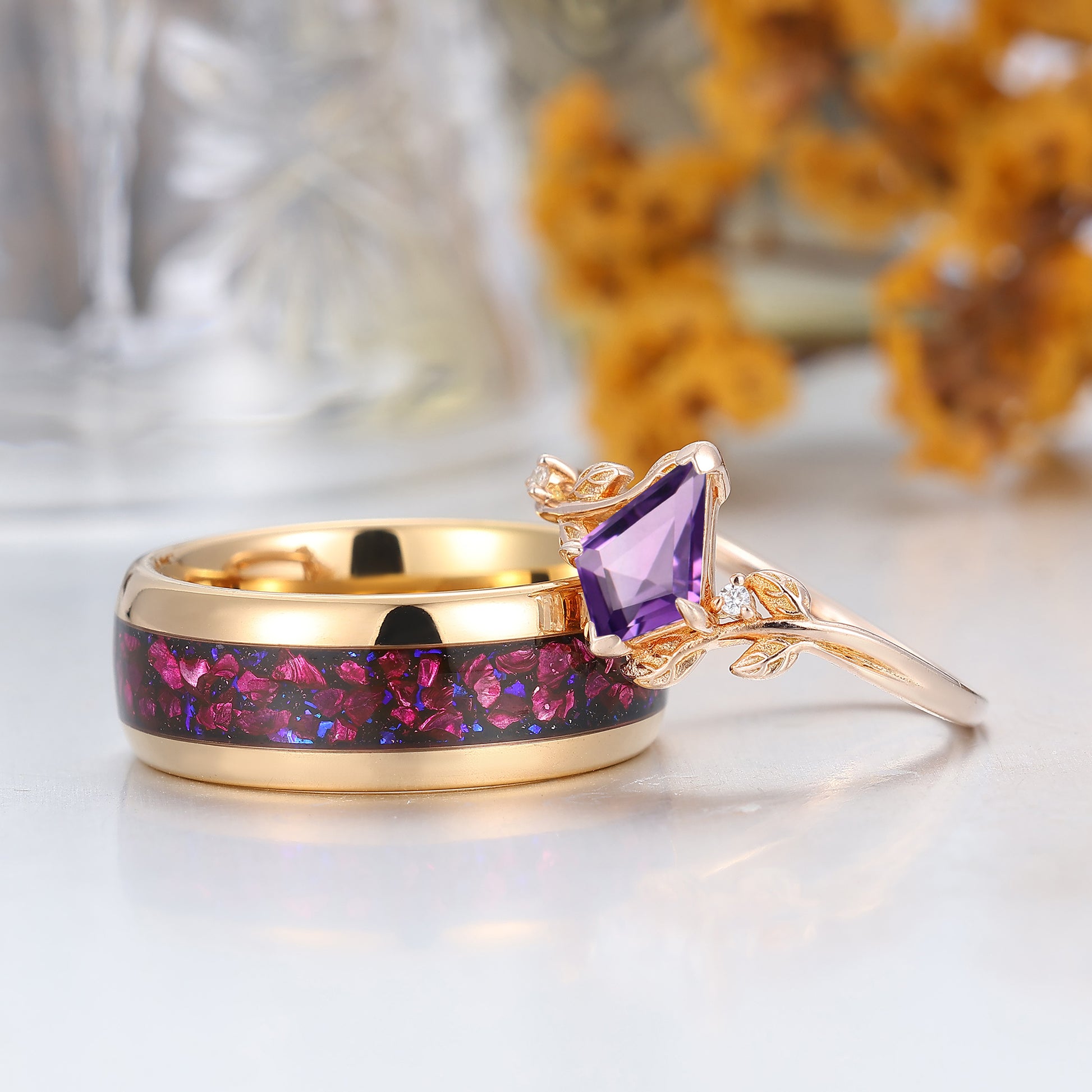 Vintage Kite Cut Amethyst Nature Inspired His And Hers Ring Purple Amethyst Couples Ring